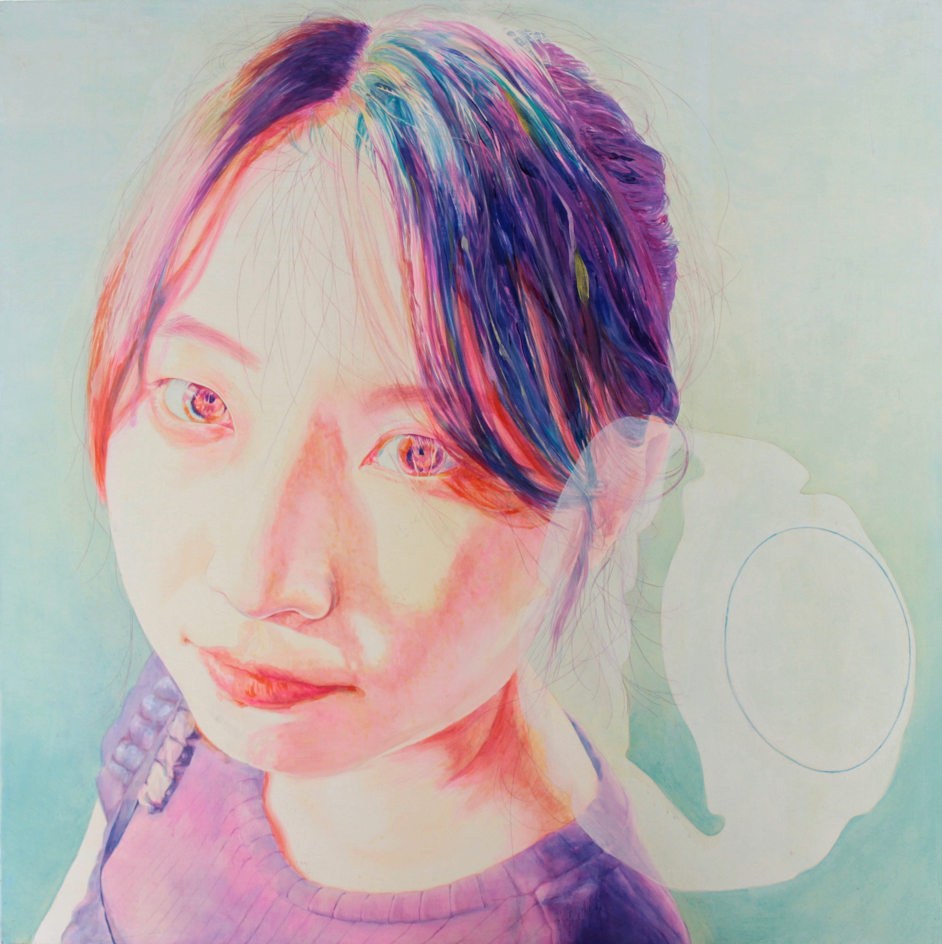 ▲ 藝術家的創作筆觸如水彩一般清透。記者 沈薇/報導鹽水月之美術館即日起到8月31日止在鹽水月津故事館推出新一檔展覽《之間—林俐伃
