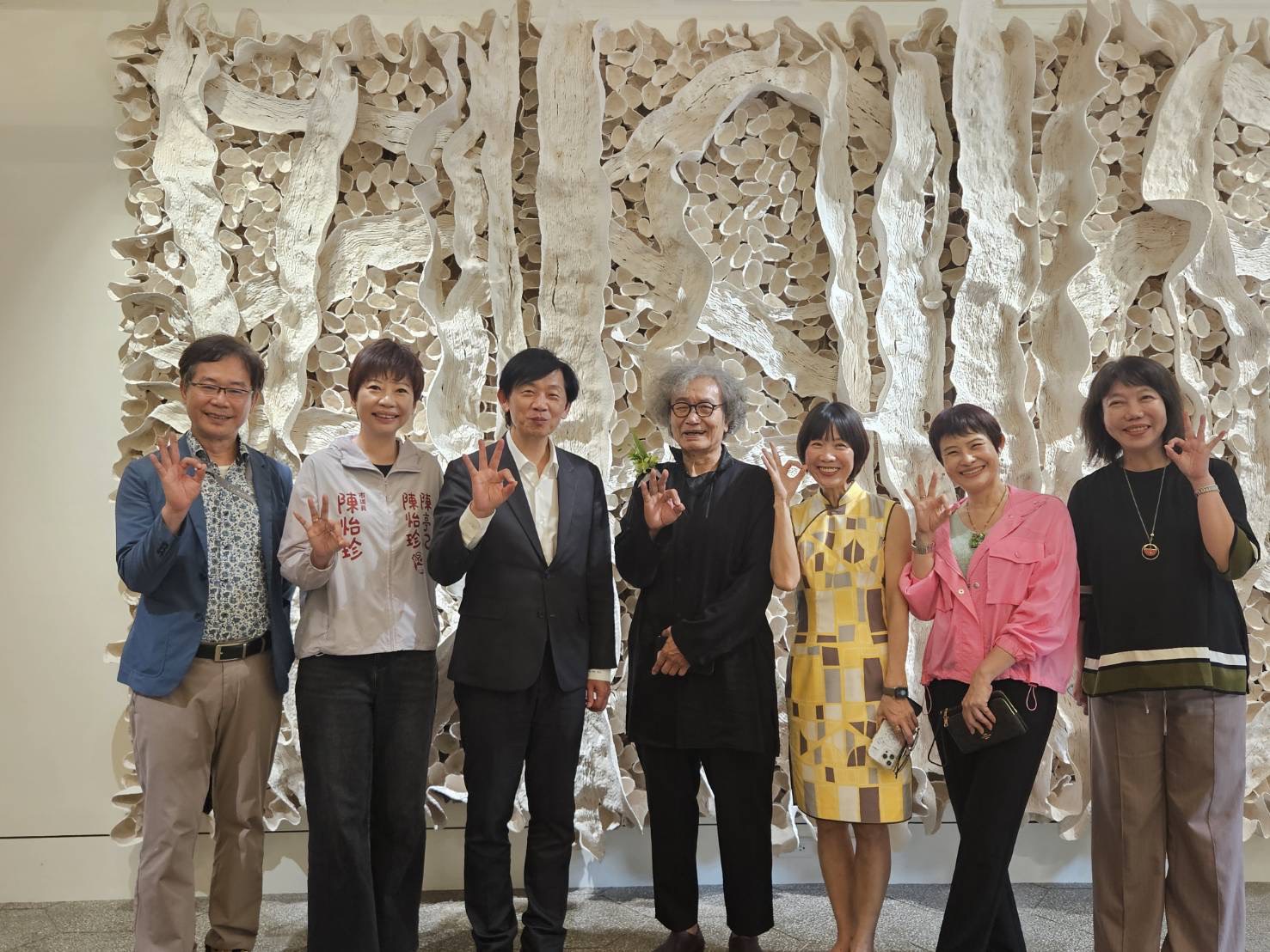 ▲市議員方一峰、七股區區長李佳隆等人【吹糖人】、【剪紙人】、【鋁罐人】黑面琵鷺文創藝術展七股遊客中心開幕剪綵「2025黑面琵鷺保育