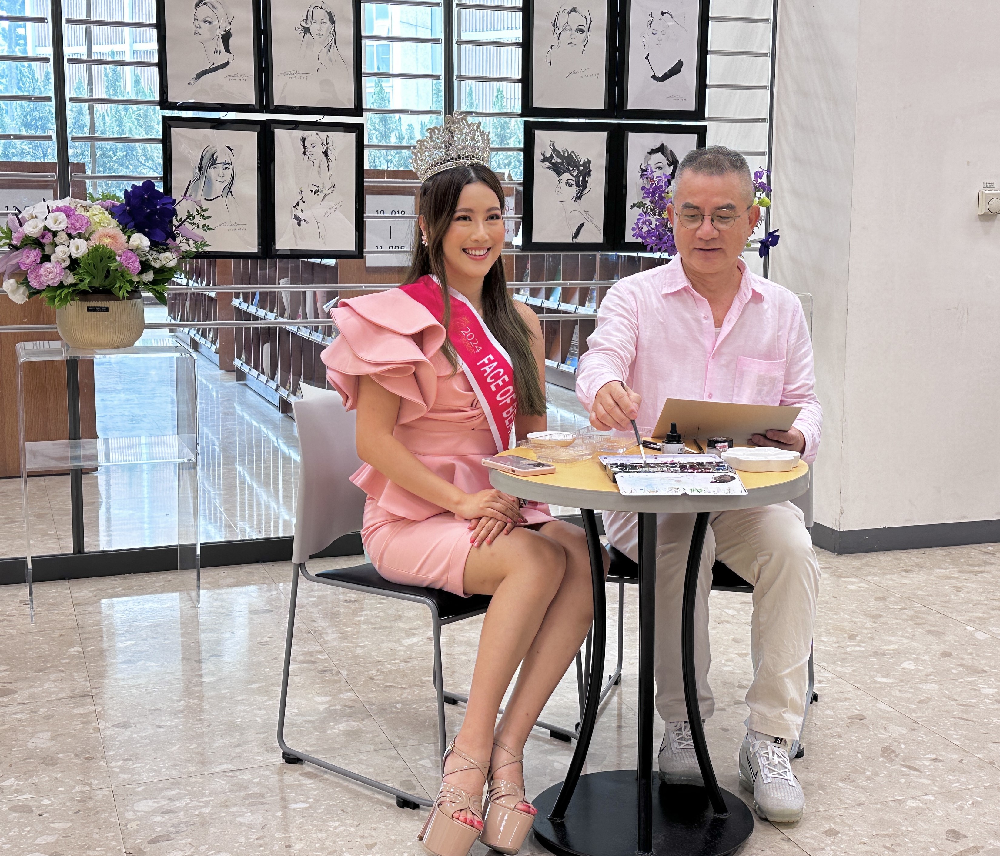 ▲ 台灣小姐王韻雅小姐展覽現場充當模特兒給老師及美術系學生人物速寫 台灣小姐Anita Wang王韻雅,5月24日(五)10:00
