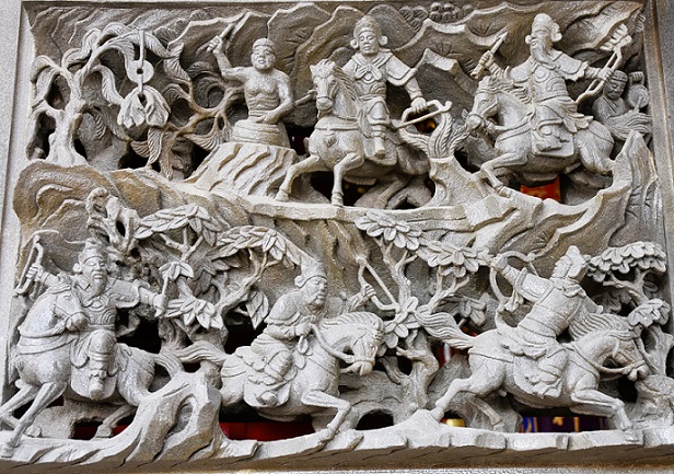 ▲ 佳里應元宮三川殿中門身堵,空間布局層次分明,人物姿態表情豐富。(張耘書拍攝) 臺南市政府觀光旅遊局2025年「臺南奇人帶路」