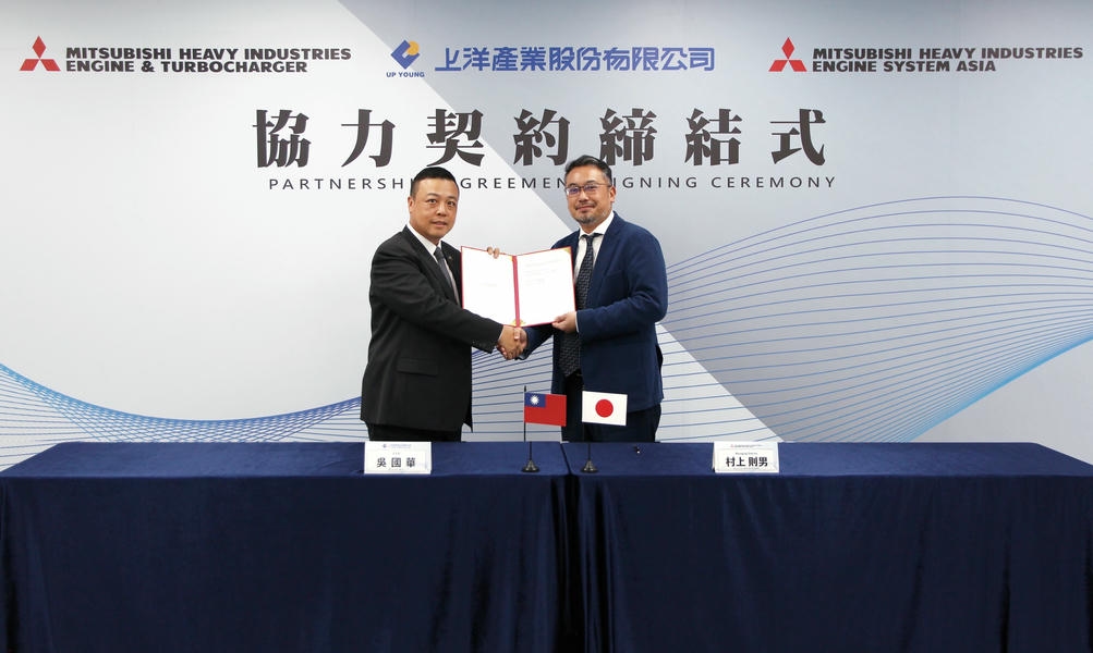▲ 上洋產業再擴代理版圖,執行長吳國華(左)與MITSUBISHI HEAVY INDUSTRIES ENGINE SYSTEM