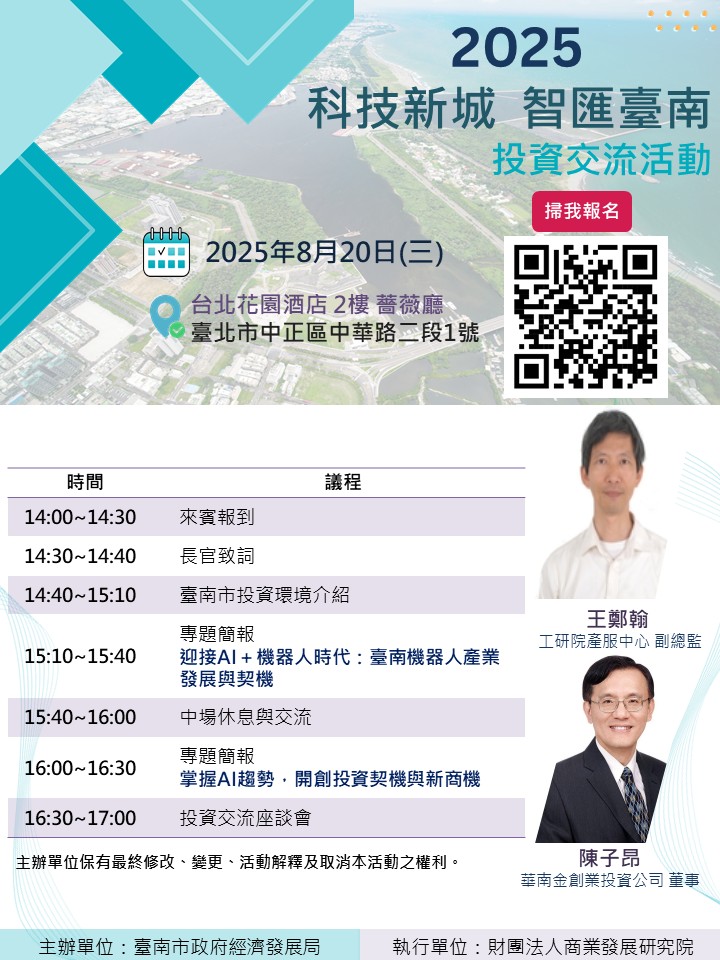 「2025 科技新城智匯臺南」投資交流活動
