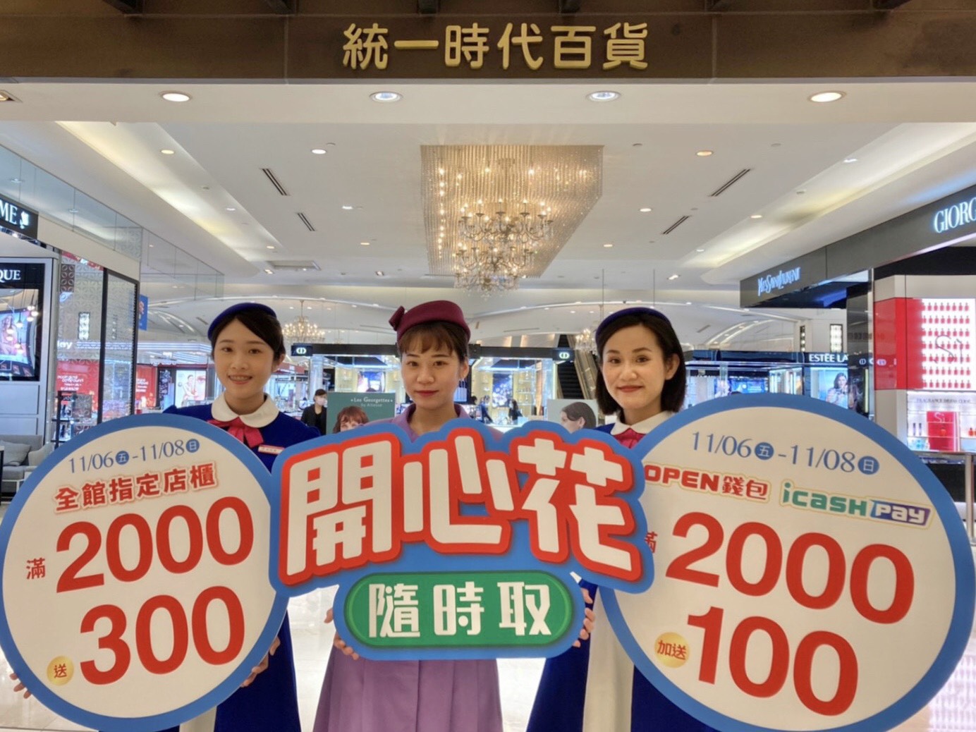 康是美推出指定商品消費滿711元、現折110元,使用OPEN錢包或icash PAY消費滿2,000再送100點;統一時代百貨台北店與高雄店、高雄夢時代,全館指定櫃位滿2000送300,使用OPEN錢包或icash PAY,憑百貨會員消費滿2,000再加送100元百貨抵用券。