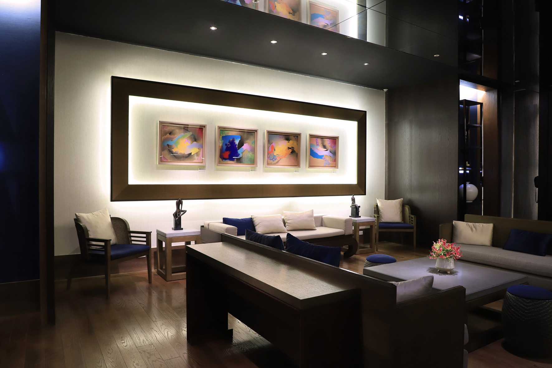 亮麗熱情的地中海色彩,並綻放出阿拉伯國度的神秘情懷,還有〈這優雅之姿〉、〈忘塵聆聽〉…等。此外,長達六公尺的經典百鶴也是絕不能錯過的作品之一,此次總共展出近六十幅作品,在飯店公共空間包含二樓宴會廳氣派長廊、十四樓晶英貴賓廊、各樓層梯廳與府城套房內等處皆能欣賞,誠摯邀請您共同感受林伯禧大師以礦石所蘊含的特殊光澤,勾勒出情感豐沛的流動線條。