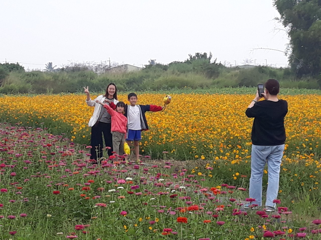 ▲ 民眾於波斯菊花海拍照