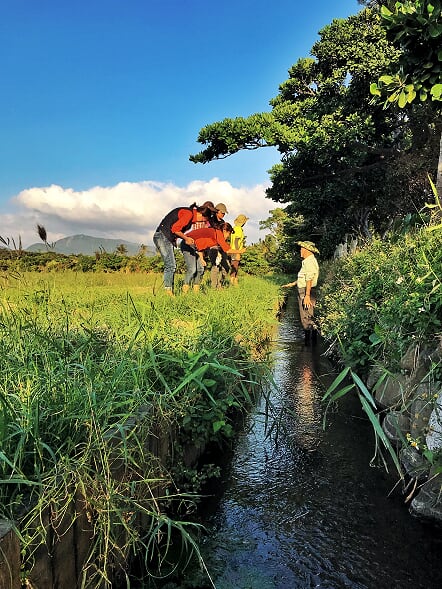 屏東海生館冬季夜宿期間限定活動「踏水巡田」行程,一直是夜宿海生館季節限定活動中大獲好評的熱門活動之一,結合恆春在地「龍水社區」的生態體驗活動,踏上台灣最南端的有機稻作區,用雙腳感受踏上泥土的感動,體會何謂「巡田水」,其中「摸蜊仔兼洗褲」的行程,往年都是摸到小顆的黃金蜆,在今年的體驗活動中,更摸到超大田蚌,讓參與的遊客不禁驚呼連連!