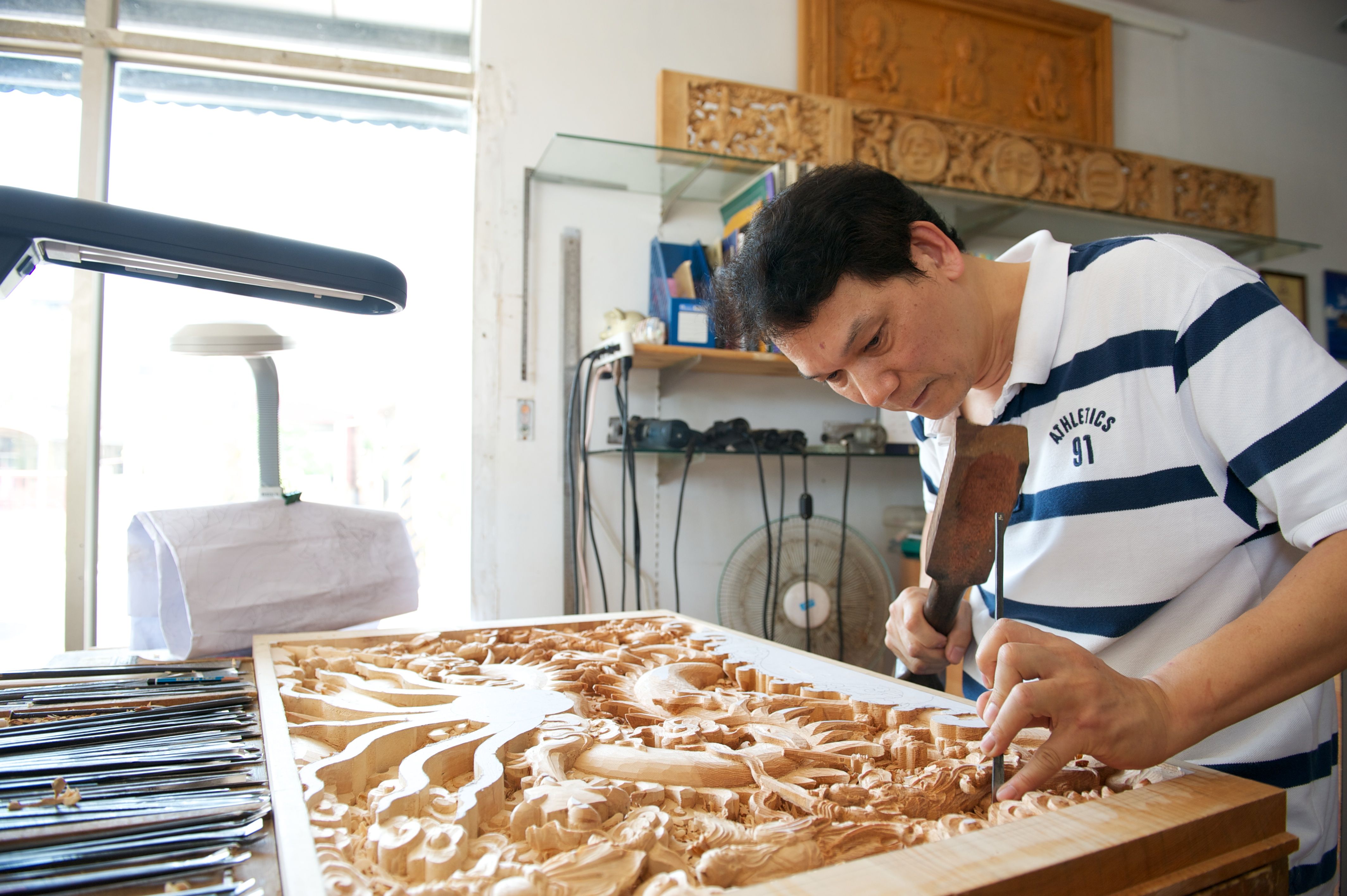 「傳統木雕」蔡德太藝師,師承張永全與黃澄雄,擅長神桌、神轎及廟宇、祠堂鑿花,作品極為精巧細緻,能雕能畫能設計,鑿花技藝精湛、工法細緻,不論仿古或新作,均能堅持古法並精進超越,充分掌握技藝及運用場域之表現形式。