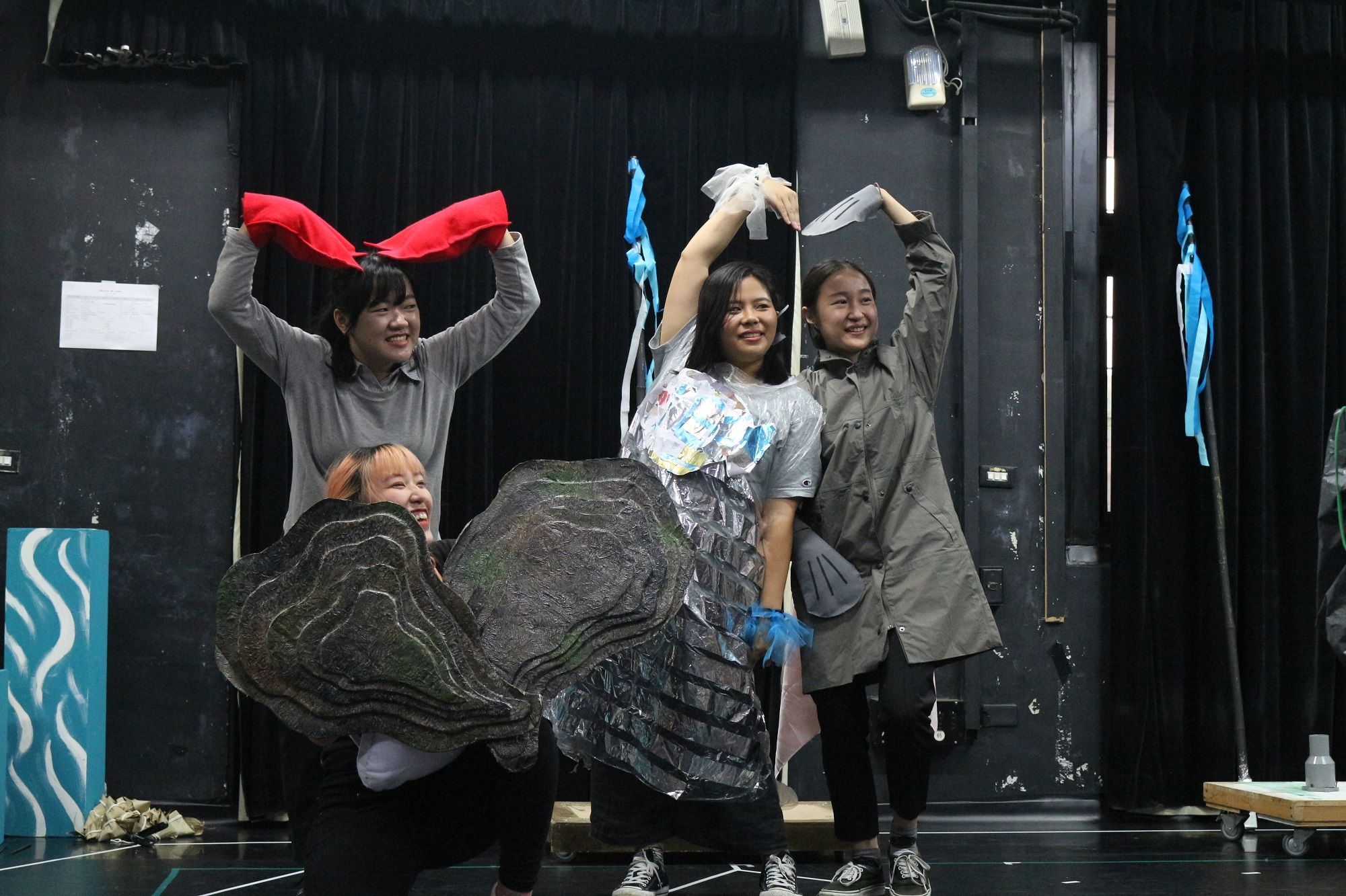 為使演出與舞台設計更貼近三股當地的濱海風情,演出同學們也多次前往三股進行場地勘查,在社區發展協會王弼主經理的在地帶領下,參觀三股各處歷史及生活地標以理解三股的歷史,也參加三股特有的「蚵學教室」活動,親身體驗當地漁民的工作和辛勞,並大啖三股肥碩鮮美的蚵仔,體驗居民生活。