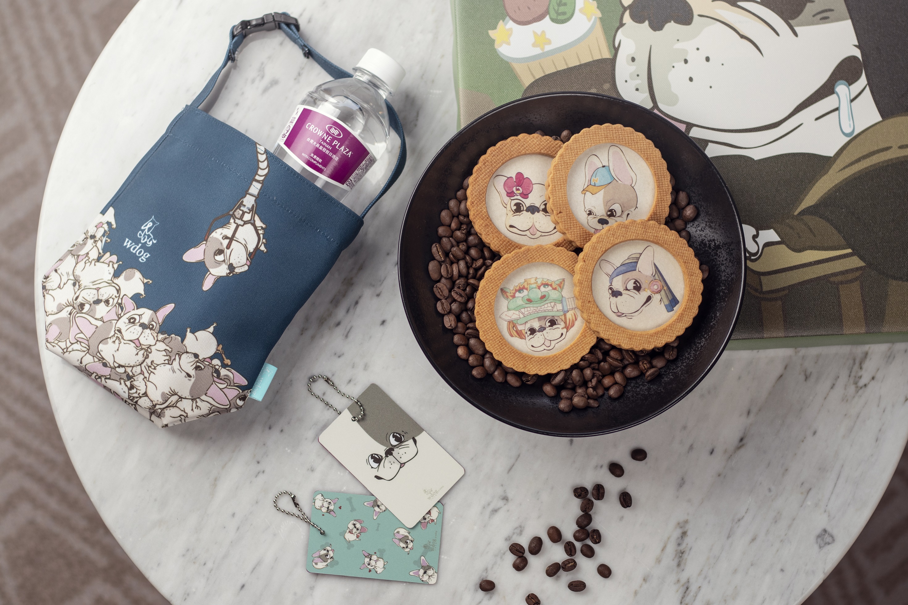 台南大員皇冠假日酒店全新登場的「法鬥主題房」勢必掀起一股搶訂熱潮,入住再贈送法鬥專屬房卡2張,退房後即可當作鑰匙圈或是吊飾,別具紀念性;還有法鬥夾娃娃機的萬用小提袋1只,最具特別的則是西點主廚劉靖晟巧思製作的法鬥手工餅乾,一組4片,分別印上了劍獅法鬥、蘭花法鬥、戴珍珠耳環的少女法鬥與棒球選手法鬥,每款都超級萌發可愛。餅乾的基底則是以杏仁粉取代低筋麵粉,增加香氣與層次,且使用食用顏料印染在糯米紙上,超萌的法鬥手工餅乾忍不住想拿起來跟它同框合拍,可愛到讓人捨不得吃下肚。法國鬥犬的粉絲們,快快相約出遊,一起被法鬥徹底療癒融化吧!訂房專線06-3911858。