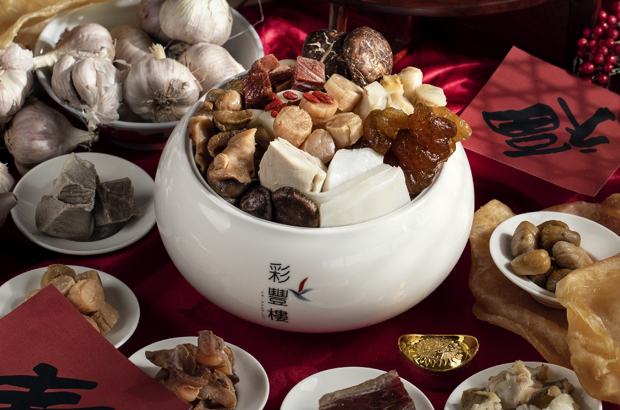 疫情期間,為了使民眾能夠品嘗到由五星大廚新鮮製作、輕鬆快速美味上桌,點亮團聚年夜飯的幸福好滋味,儘管除夕團圓當日用餐早已於12月中旬訂位額滿,彩豐樓特地額外加碼開放館內2道高CP值年菜外帶預訂,分別有「廣式羊肉爐」象徵新春喜飛揚,每盅1,550元,選用去骨帶皮的羊腩,整塊先用熱水與柳橙皮一起川燙後,切成3公分約一口大小,再以紅白豆腐乳、柱侯醬、老陳皮、紅蔥頭、蒜頭、白甘蔗與月桂葉、桂皮等香料一起煸炒入味,加入馬蹄、香菇、冬筍等食材一起悶煮90分鐘,讓羊腩入味並釋出濃郁膠質,屬於廣式濃稠紅燒做法,與台式羊肉爐藥膳湯底截然不同,鮮香四溢,沒有台式藥膳味,屬於溫補。有別於台式口味也回購高人氣年菜「港式佛跳牆」象徵幸福滿滿溢,每盅3,200元,以響螺、鮑魚、瑤柱、花膠、海參、鵝掌、金華火腿、全雞等食材搭配上湯精華,再經過8小時熬煮,每一口湯裡都能嚐到豐富的膠質以及食材鮮甜甘醇的濃郁滋味,是新春團圓宴最佳養生湯品。因年菜皆為常溫出貨,須至現場提領,恕不提供宅配服務,且不與其他優惠並用,數量有限,售完為止。年菜提領時間為2021年2月10日(小年夜)14:30-16:30或2月11日(除夕)14:30-16:30,年菜預購專線:06-512-1910彩豐樓。