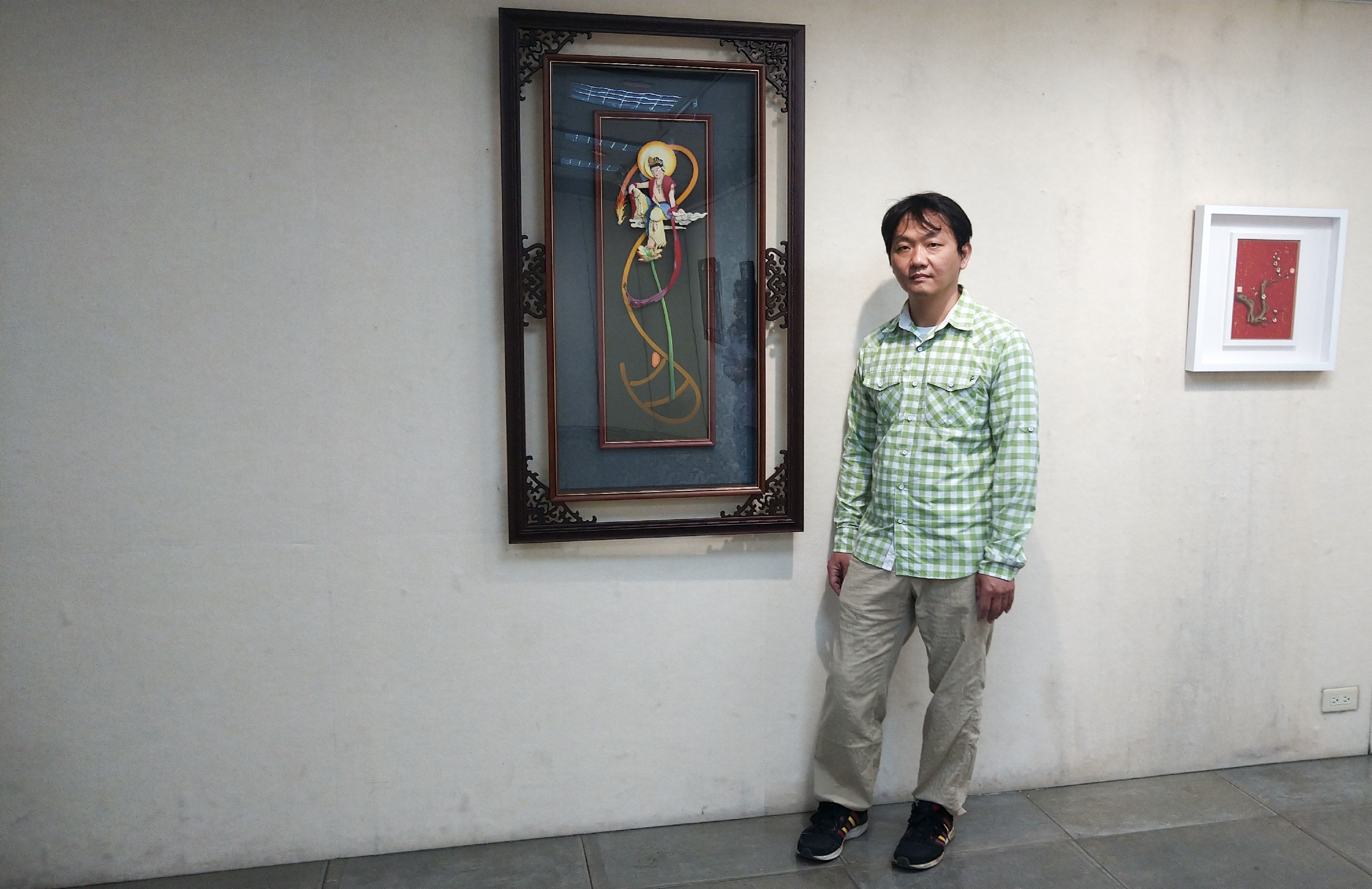【台南訊】林永盛就讀高中廣告設計科時,便開始接觸紙雕,於學習過程中從基礎的動物卡通到故事人物。至今已有十多年的時間,猶記得第一幅較為煩瑣的創作就是參考了敦煌壁畫天女像中的「飛天」一圖。從此作品多以參考廟宇裝飾將其轉化為紙雕呈現,以仕女圖及佛像居多。正因一路創作上眾多作品皆為佛像人物,才有了「佛」系列作品展出的主軸,並紀錄了這些年的創作過程。