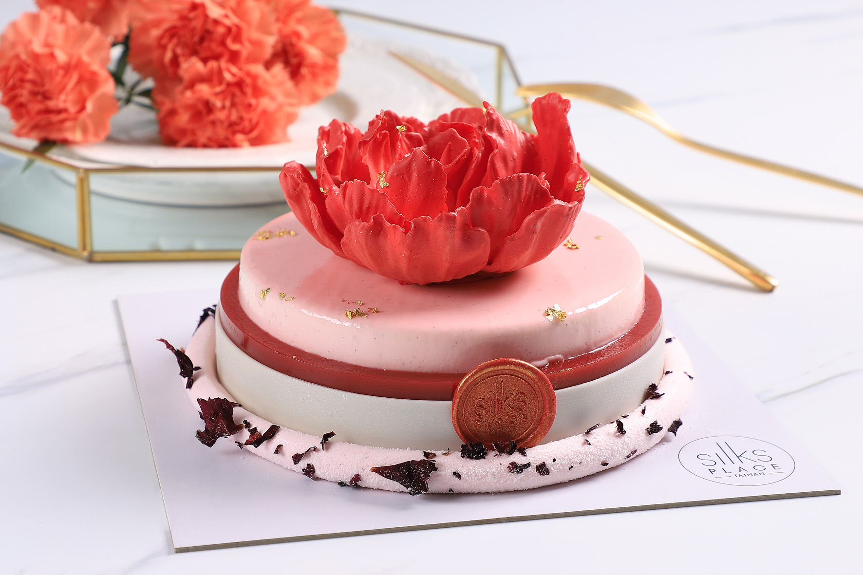 每年母親節都要開打的蛋糕大戰,今年羅倫主廚首次使用養顏聖品「燕窩」蛋糕來應戰,造型落落大方的粉色花朵,象徵母親璀璨的青春歲月,Q嫩滑口的燕窩果凍搭著輕盈細緻的香草慕斯,並以杏仁脆片和玫瑰草莓醬提升整體口感,媽咪苺梅蛋糕嘗鮮價六吋1,250元。另有一款獻給偏好成熟大人口味的母親,黑夜濃情朱古力以濕潤蓬鬆的巧克力海綿蛋糕作為基底,裹入70%苦甜黑巧克力慕斯,濃醇朱古力柔順化口,搭配酥脆杏仁可可碎片展現豐富層次,六吋售價960元。凡持房卡或4、5月館內餐廳消費發票預購蛋糕,立即享有85折早鳥優惠,敬請三天前預訂。
