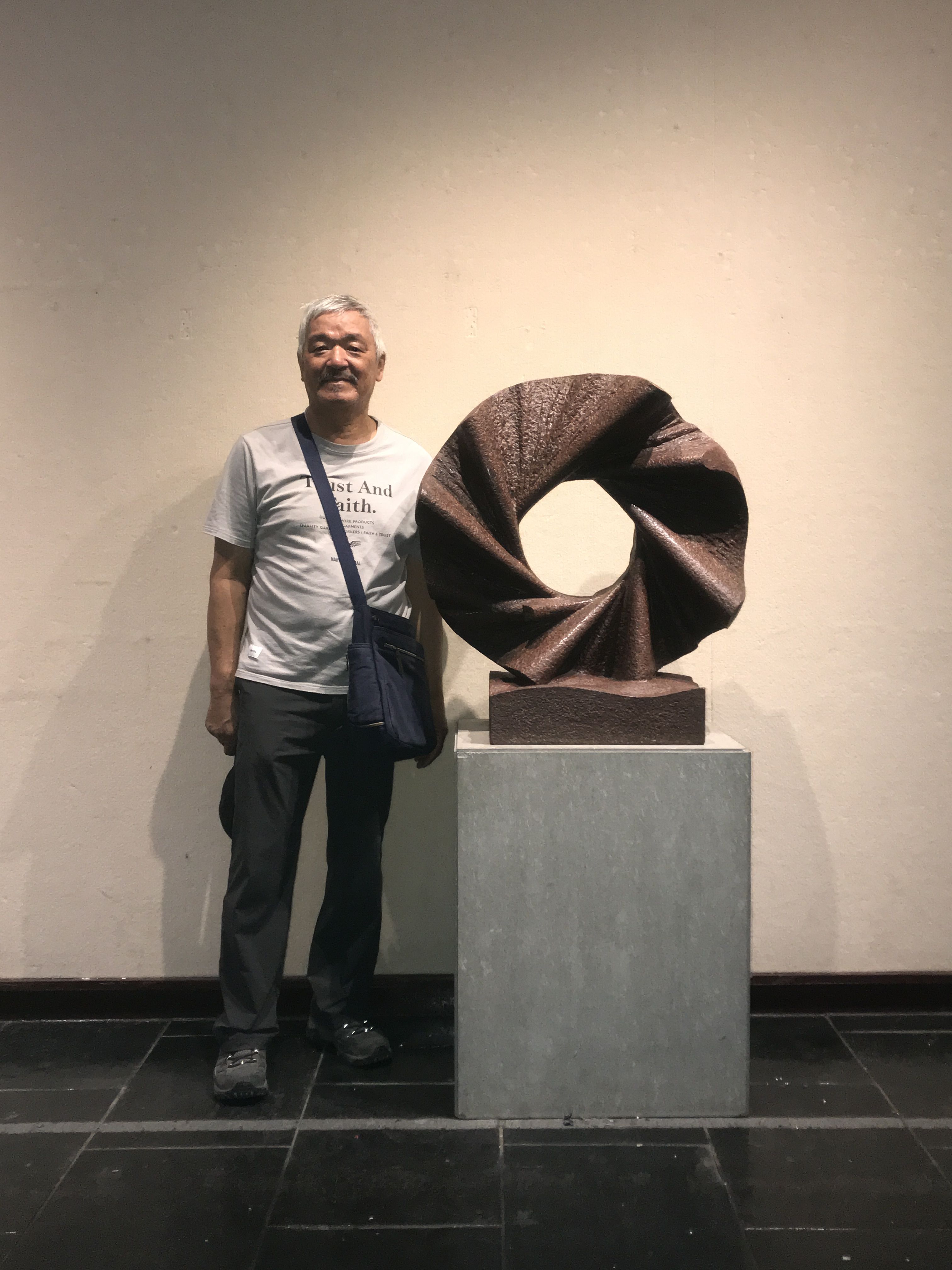 鄧廉懷老師1950年出生於宜蘭,從事雕塑創作已40餘年,早期作品以寫實為主,細膩、栩栩如生的技巧蘊含著豐富的情感。1985年拜雕塑家楊英風為師後,用心揣摩楊英風的理念與風格,創作改採寫意技法,運用簡潔的線條刻劃出力與美,流暢的曲線、迴旋的空間變化,展現剛硬而渾厚、生生不息的生命涵量與張力,因此深受收藏家喜愛,陸續受邀舉辦展覽。除此之外,鄧老師更積極參與公共藝術計畫,致力於將藝術融入生活環境中,曾獲臺北市立美展雕塑組首獎、交通部觀光局日月潭風管處公共藝術首獎、衛生署彰化醫院公共藝術首獎等。