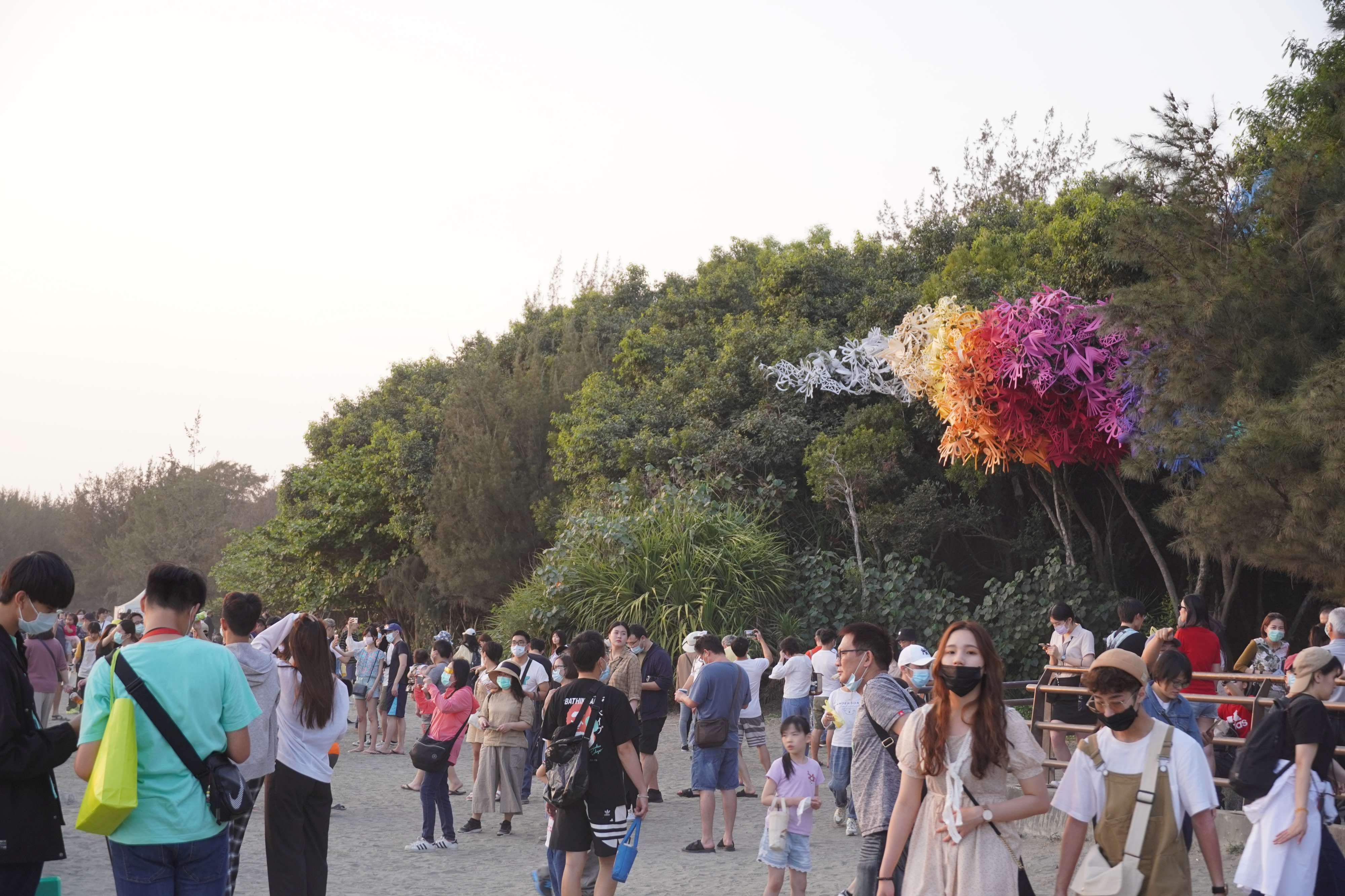 【台南訊】為期23天的2021漁光島藝術節4月18日圓滿落幕。今年藝術節在沙灘與樹林間,共展出12+1組藝術作品,市府文化局估計23天的展期間,總共吸引逾25萬人次參觀。文化局指出,由於疫情警報尚未解除,今年因應人潮湧入,為做好防疫工作,不僅首度於藝術節期間封島,更出動500多人次維護交通、測量額溫、消毒及疏導人潮,市府各局處與各公私部門合力打造
