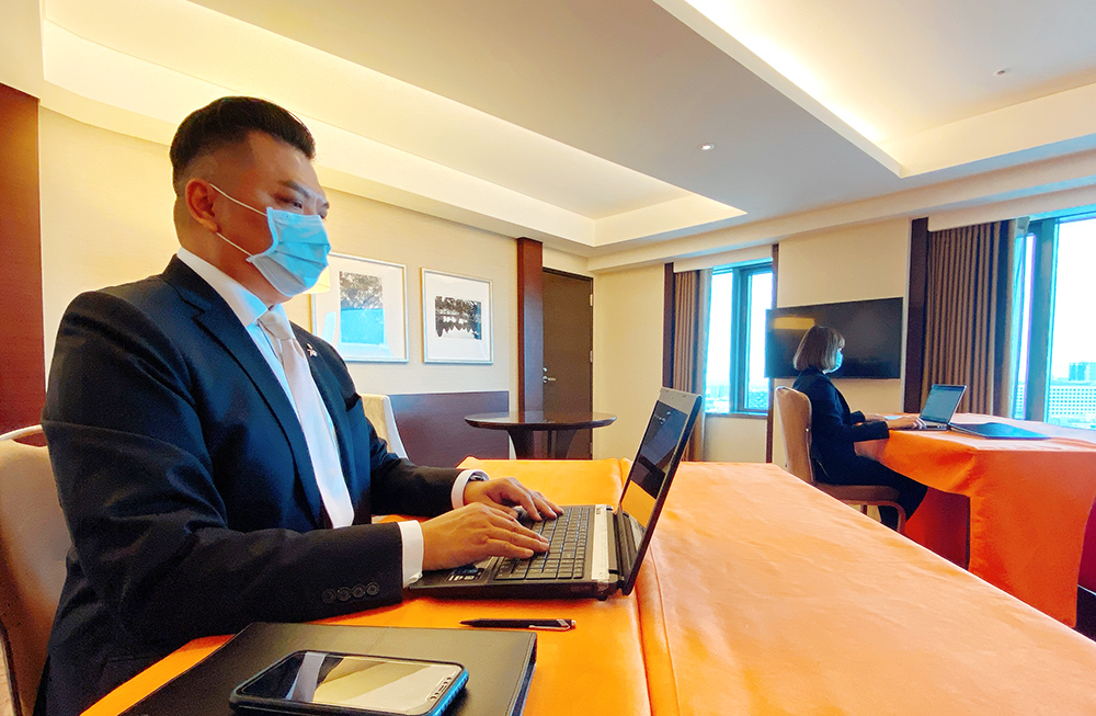 ▲ 香格里拉台南遠東飯店即日起推出【行動辦公室專案】配備至少1.5公尺距離辦公桌椅,每日最低1,500元起
