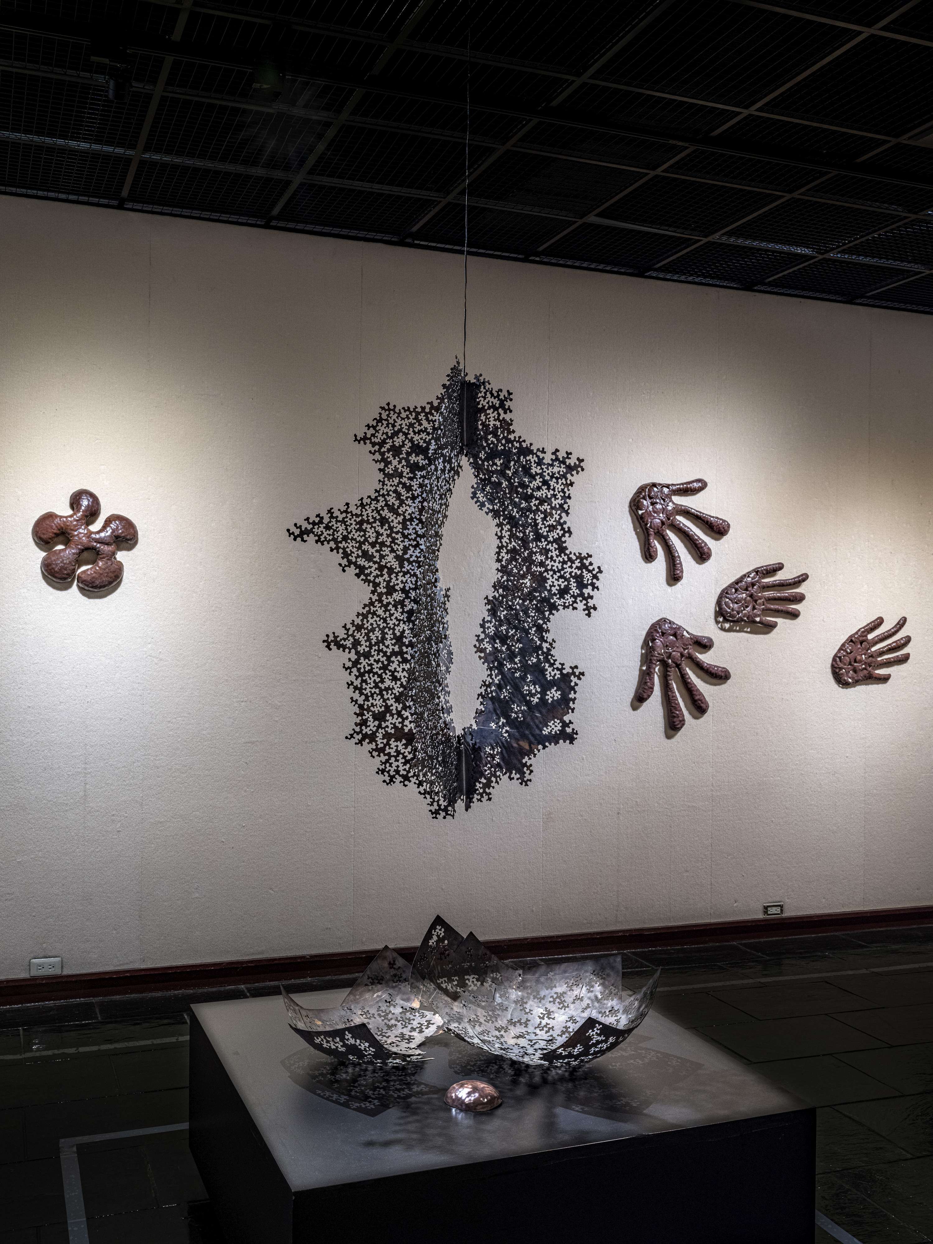 今年登場的第6屆臺南傑出藝術家巡迴展《神紋樣:廖慶章.蘇小夢雙個展》由龔卓軍教授策展,結合臺南市無形文化資產保存者廖慶章大師與金工界國家工藝師蘇小夢教授的精彩作品,以及陳宣城建築師的展場設計,展覽以包裹著各式民間信仰紋樣的金屬支架和老原木構成的橫樑,概念化的三進院落空間與藝術家的作品相互對話,在展場空間形成了一個祈願的宇宙。本展自5月7日開展以來深獲好評,首展原預定於臺南文化中心展出至5月23日,惜因疫情升溫、場館關閉,讓難得的高品質展覽只能閉門興嘆,並連帶影響原本預定6月後至臺中及臺北的巡迴展覽和相關工作坊課程,甚為可惜。