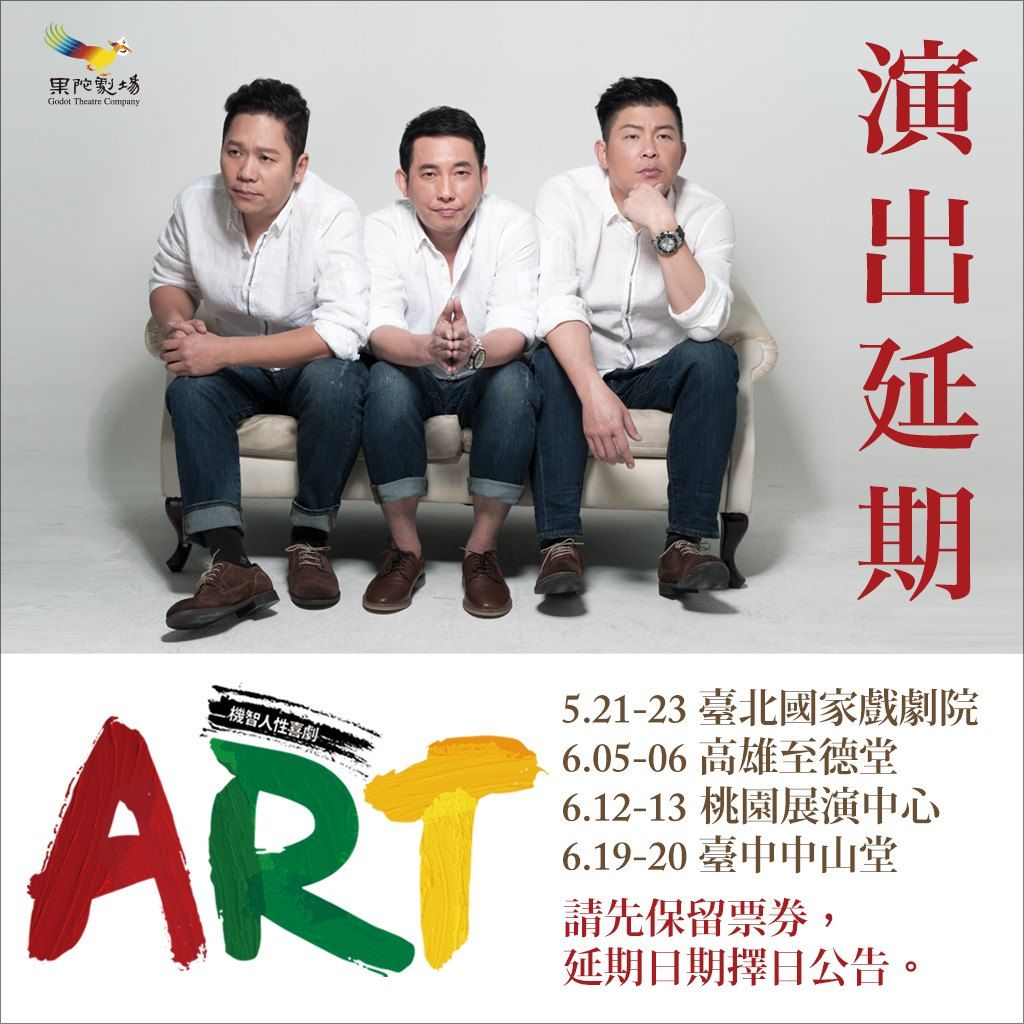 【台北訊】因出現感染源不明的本土病例,果陀劇場自5/11起配合中央防疫建議已延期跟取消共14場,如今三級警戒再延期至6/14,果陀劇場忍痛再宣布將六月底前的演出全數延期。受影響最大的是3度加演的舞台劇《ART》,共7成演出場次受到影響。從5/11起3戲共18場演出,包含《ART》、《生命中最美好的5分鐘》、《阿不拉桑の太太》,總票房損失將近1,800萬元。