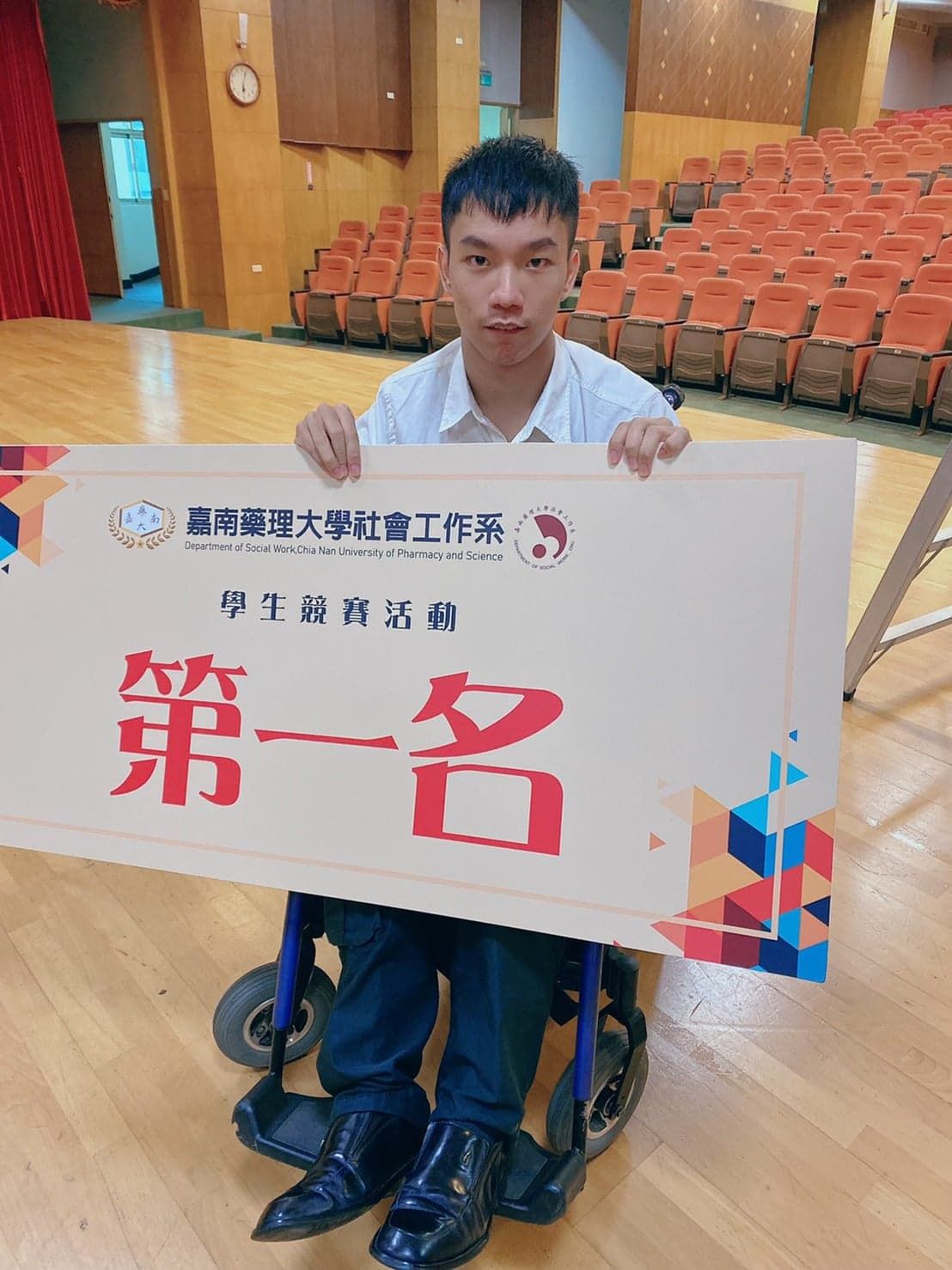 「挫折並非偶然,或許身體會限制我們的行動,甚至使人想放棄,但只要有一顆勇敢善良、堅持不懈的心,生命的樂章就會不斷跳動著。」,這是嘉南藥理大學社工系應屆畢業生黃柏誠人生的深刻體會,因他的堅持不懈,在今年畢業生中榮獲「生命勇士獎」殊榮。