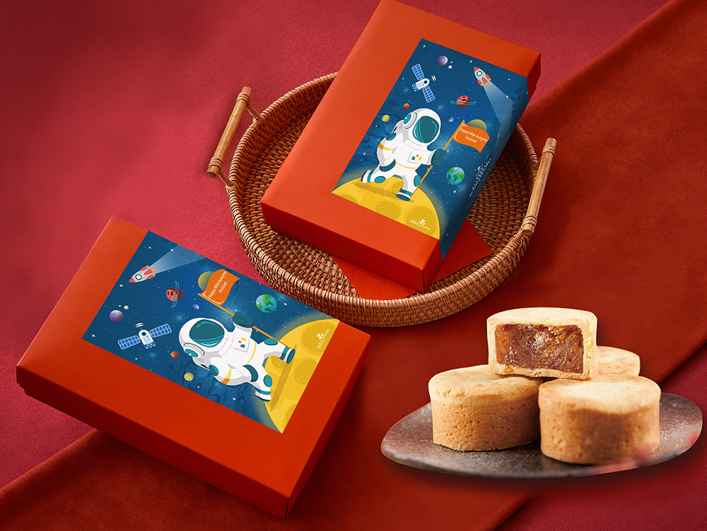 今年的月餅禮盒以花卉為主軸,運用水墨畫應物象形技法,巧妙地將圓月、玉兔、窗花、竹等元素融入象徵美好圓滿的意境,並特別選用細緻觸感材質,打造食用後可再利用作為收納盒的環保概念,每款月餅禮盒更貼心地依照送禮客群各有獨特設計巧思。