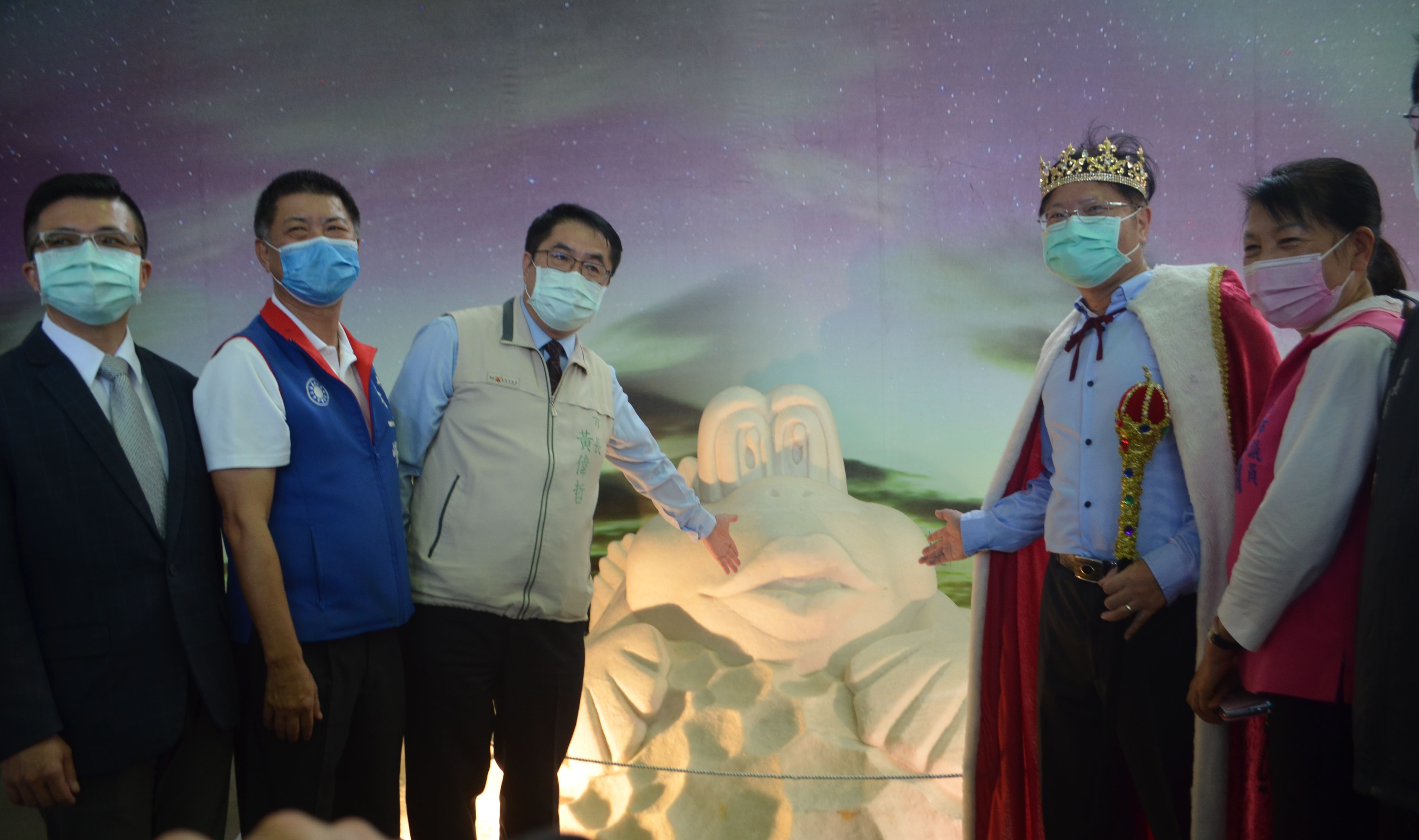 臺南市黃偉哲市長表示,一見雙雕是個有歷史、有傳承,而且創造非常好績效的活動,從第一年沙雕加鹽雕,今年又加入新的元素,就是木雕,透過師父的巧手,把漂流木或腐木變成藝術品、變成工藝品、變成有價值的東西,期待疫後的觀光旅遊,不僅是自己開開心心,也能夠玩出健康,玩出許多價值來,歡迎大家一起來七股,來馬沙溝,來台南,吃吃美食、逛逛美景、舒緩疫情所帶來的身心壓力。