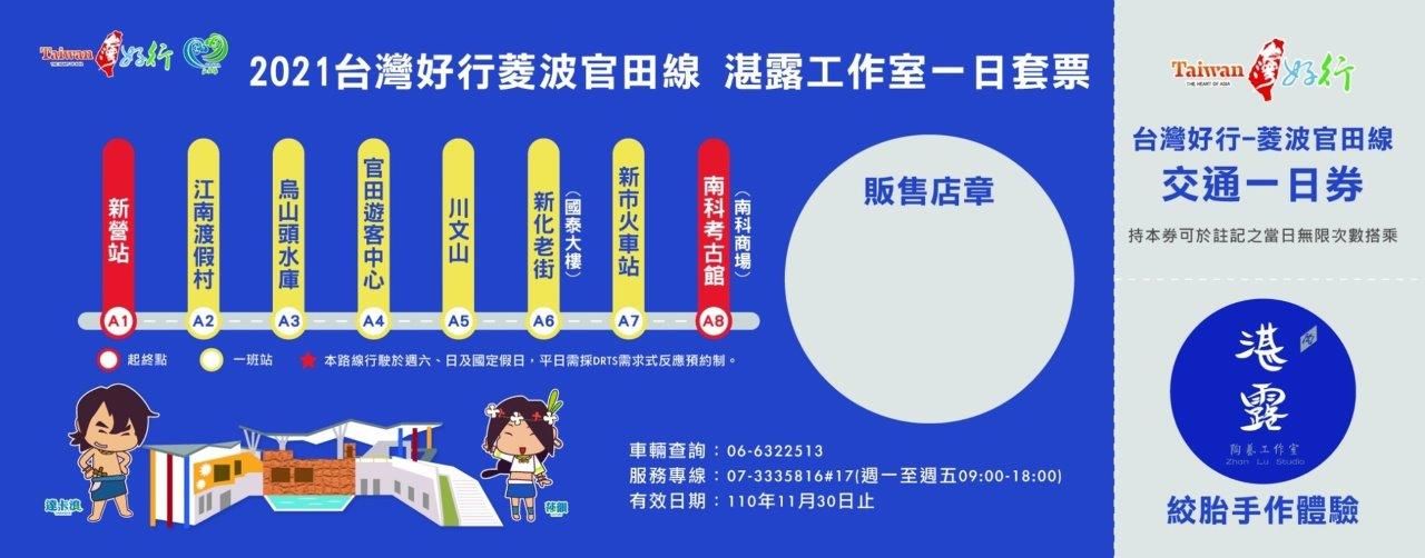 西拉雅管理處處長許主龍表示,此條路線整合沿線的觀光景點,未來將與周邊業者聯合推出各種專屬優惠與套票,業者包含了八田與一紀念園區的蔦町和菓子、知樂堂琴齋、新化老街的湛露工作室、瓜瓜園、1934街役場古蹟餐廳坊等,給予旅客最實際的優惠,鼓勵民眾搭乘公共運輸工具遊玩,除此之外,管理處與官田區公所及公路總局共同建置「菱波官田」多元特色自行車道,也邀請民眾騎乘自行車穿梭在菱波官田自行車道上,享受節能減碳輕旅行。