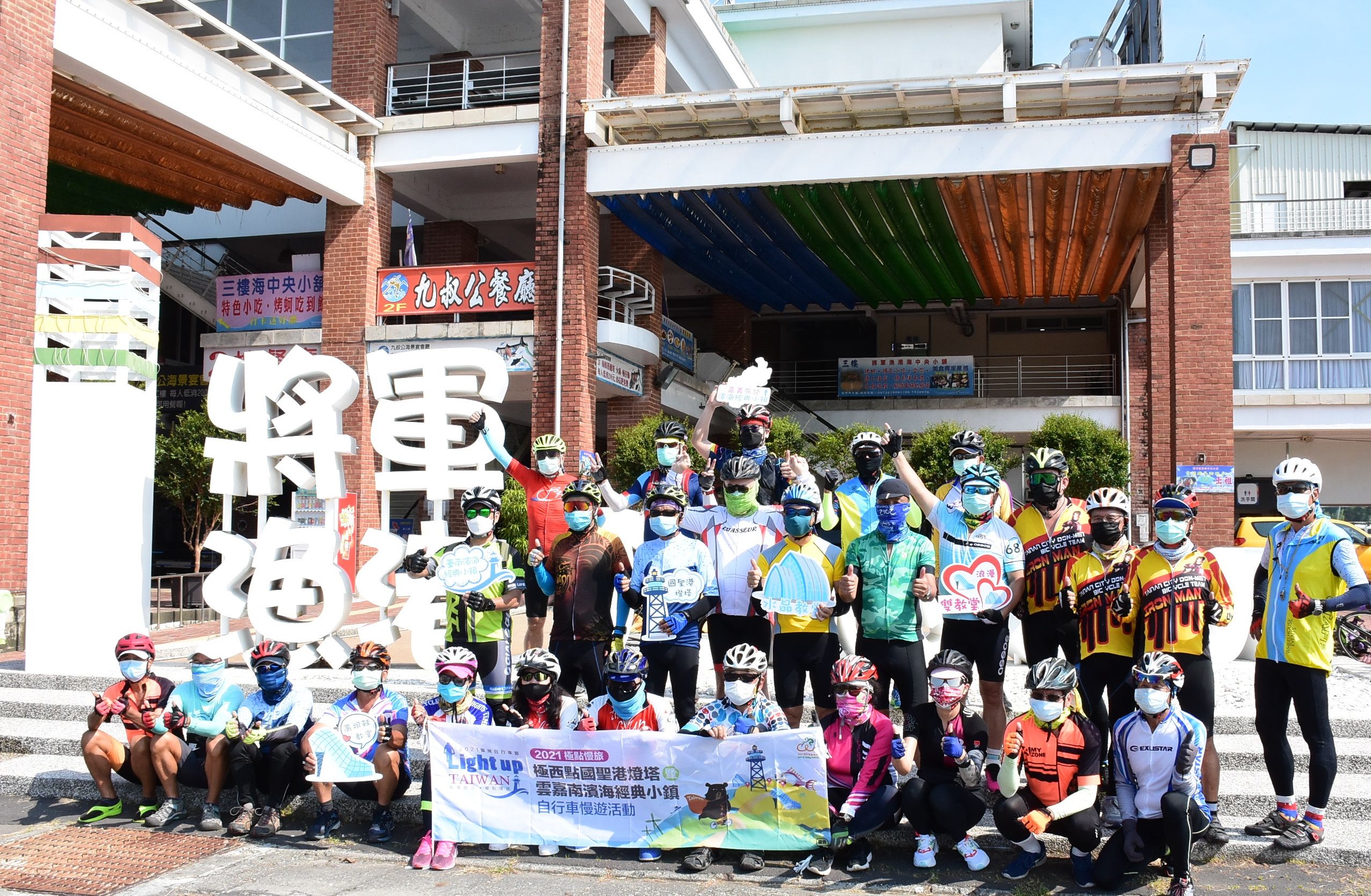 雲嘉南管理處徐振能處長表示,「2021極點慢旅-極西點國聖港燈塔暨雲嘉南濱海經典小鎮自行車慢遊系列活動」之帶狀深度慢遊活動,力推自行車與在地特色結合,每場活動均串連觀光圈產業,希望以雙輪節奏帶領車友仔細體會雲嘉南濱海在地人文風情。「臺南將軍場」自行車深度慢遊內容相當豐富,規劃由將軍漁港出發,悠遊於靜謐漁村裡體驗小鎮魅力,途經充滿童趣藝術的3D彩繪村及青鯤鯓扇形鹽田,午間回到將軍漁港-海中央小舖,品嚐烤蚵及美味風味餐,終點站是以「綠汕帆影」著稱之馬沙溝海洋休閒運動渡假中心,讓車友們盡情享受金沙踏浪、絕美夕陽風光。