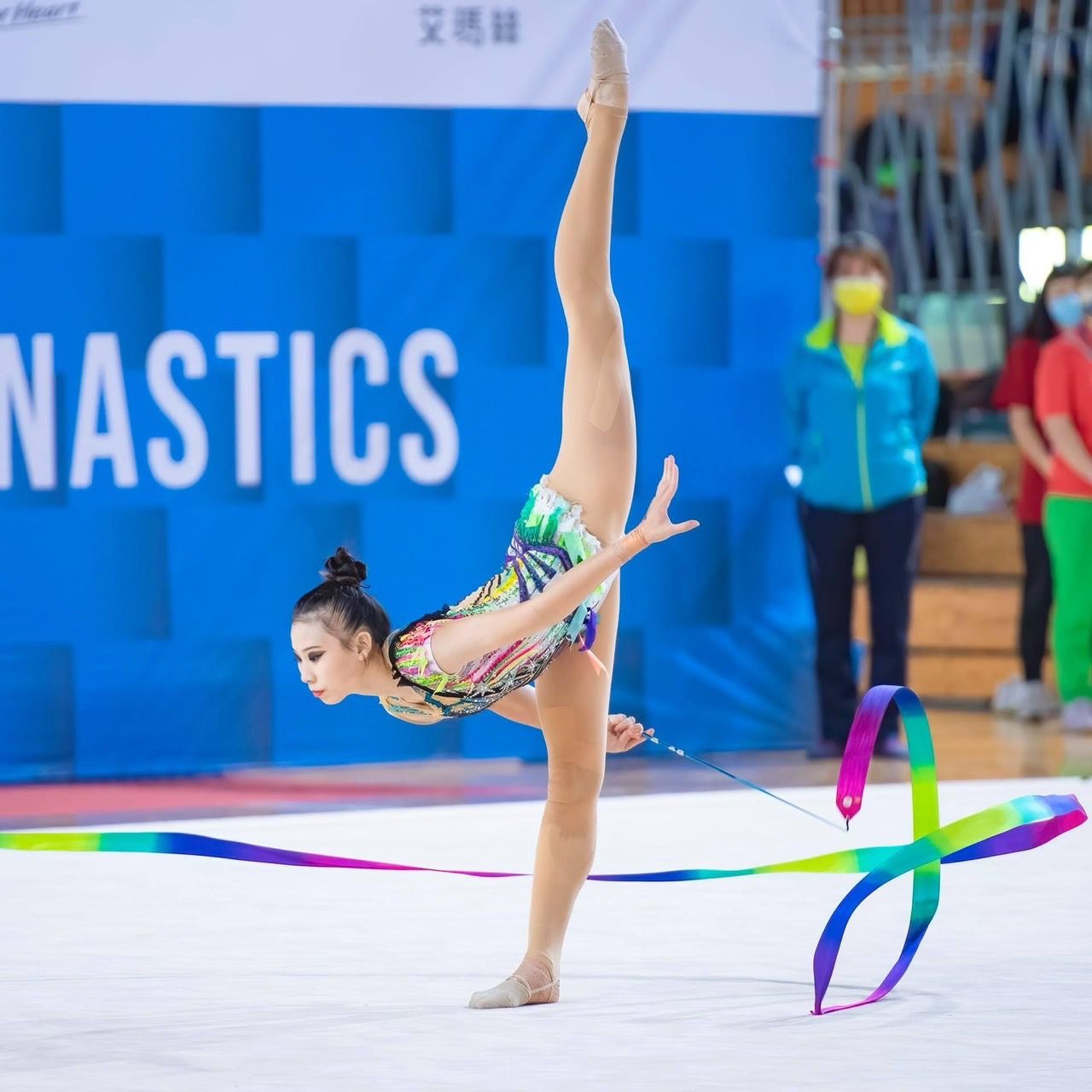 運管系一年級的蔡卉喬同學自高中起就是優異的韻律體操選手,而過去四處征戰的她,近期因傷所苦,連帶影響常態訓練及信心,蔡同學表示曾經處於非常低潮狀態,一度感到迷茫且看不見希望,而這次比賽準備期間,在教練協助下,利用70天暑假時間,透過視訊練習並需維持基本體能,還要絞盡腦汁並運用各種方式來挑戰許多技術性動作,能在激烈競爭的全運會獲獎,心情非常激動,因為這意味著經歷許多挫折的她,經過持續努力、不斷堅持,終於在自己熱愛的韻律體操項目中又站起來了。