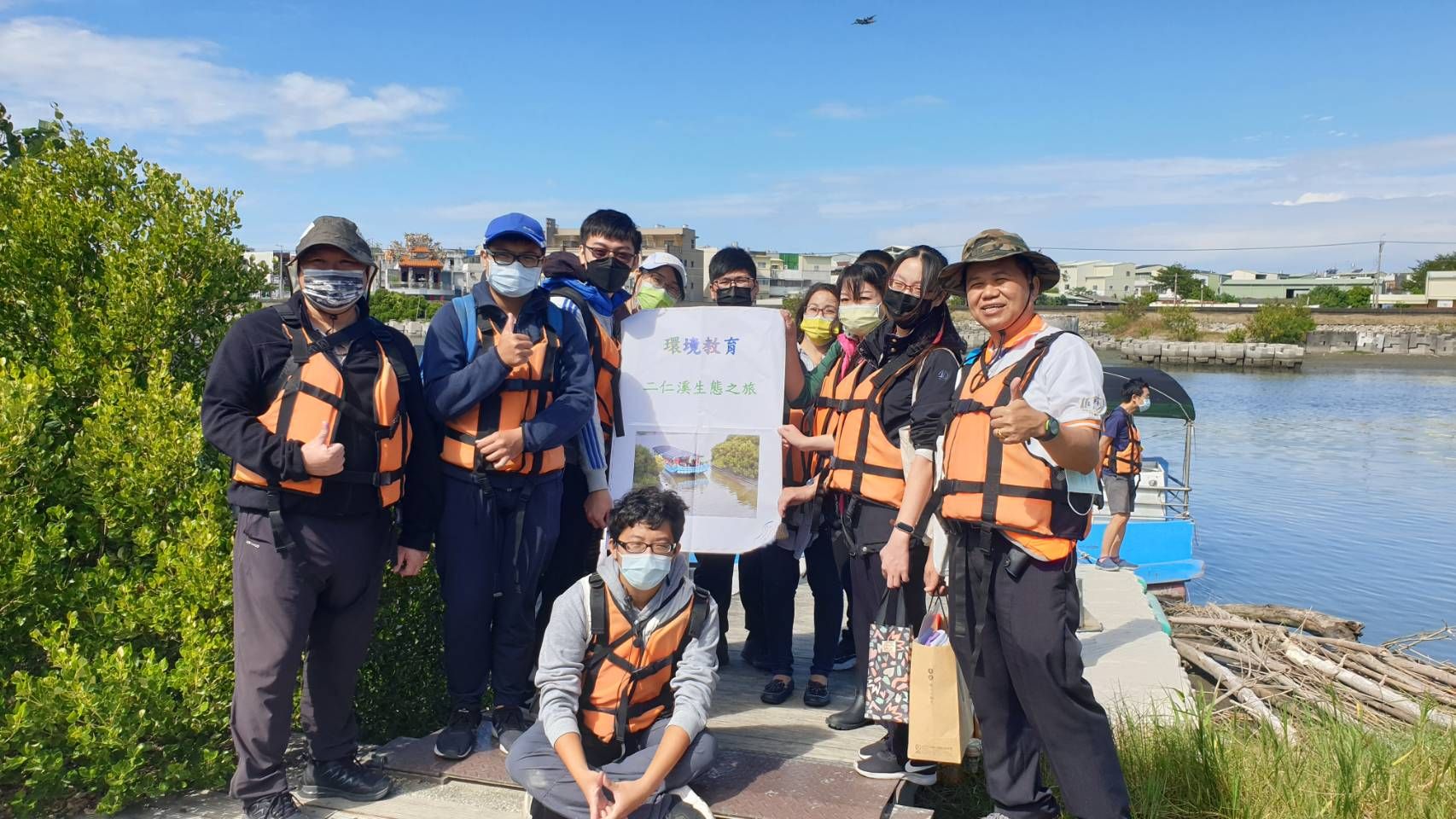 該活動由嘉藥觀光系黃源謀老師主持,近30位師生參與。黃老師目前也擔任臺南市解說員發展協會理事長,在他精心規劃下,請高雄舢筏協會安排一趟二仁溪生態之旅,協會解說員不僅分享二仁溪的前世今生,也帶領學員親自搭乘舢筏暢遊河岸水路,沿途發現彈塗魚、招潮蟹等生物出沒濕地,大家驚喜萬分,讚嘆不虛此行。