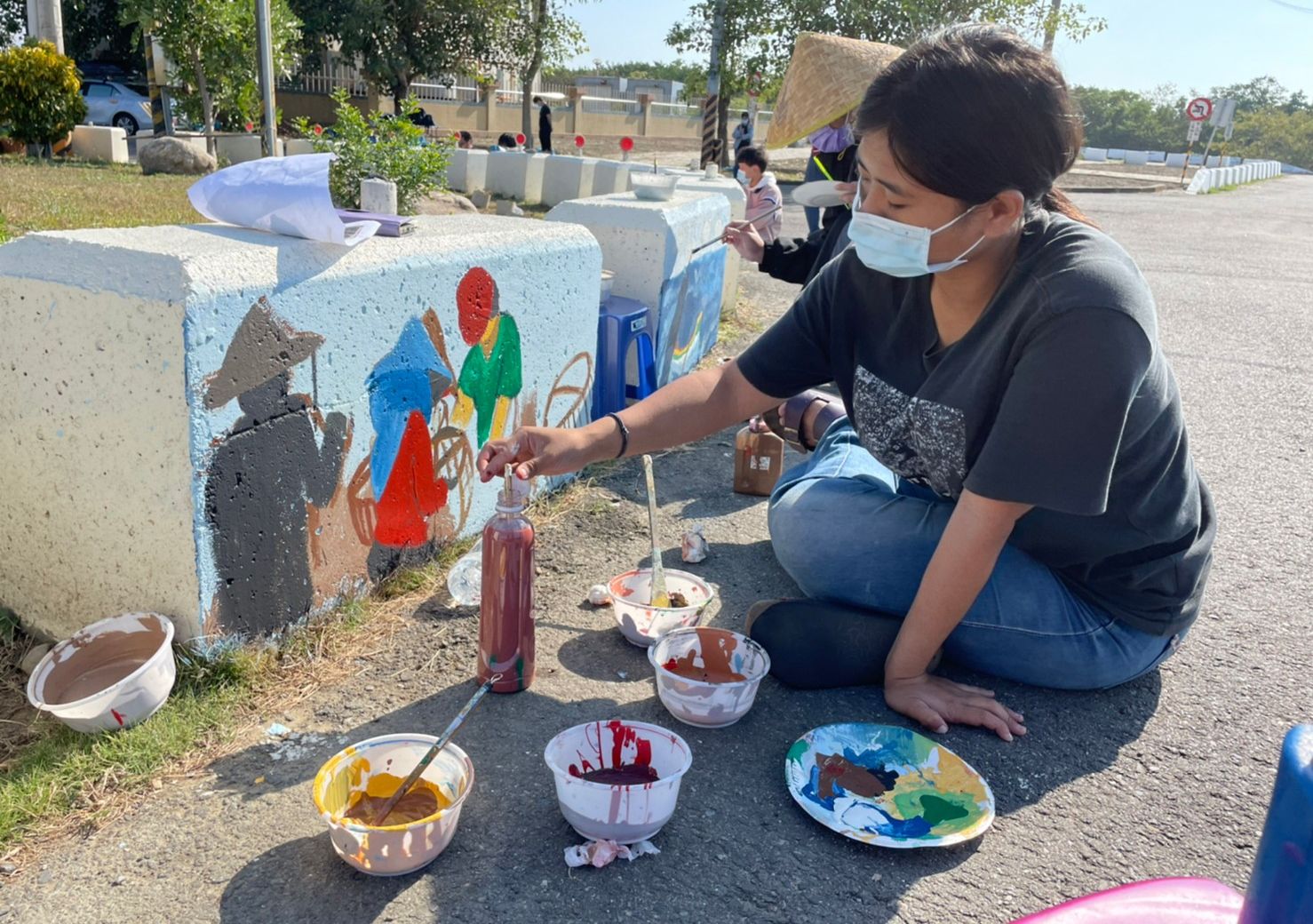 ▲ 嘉藥郭珮君老師帶領學生參加石墩彩繪活動
