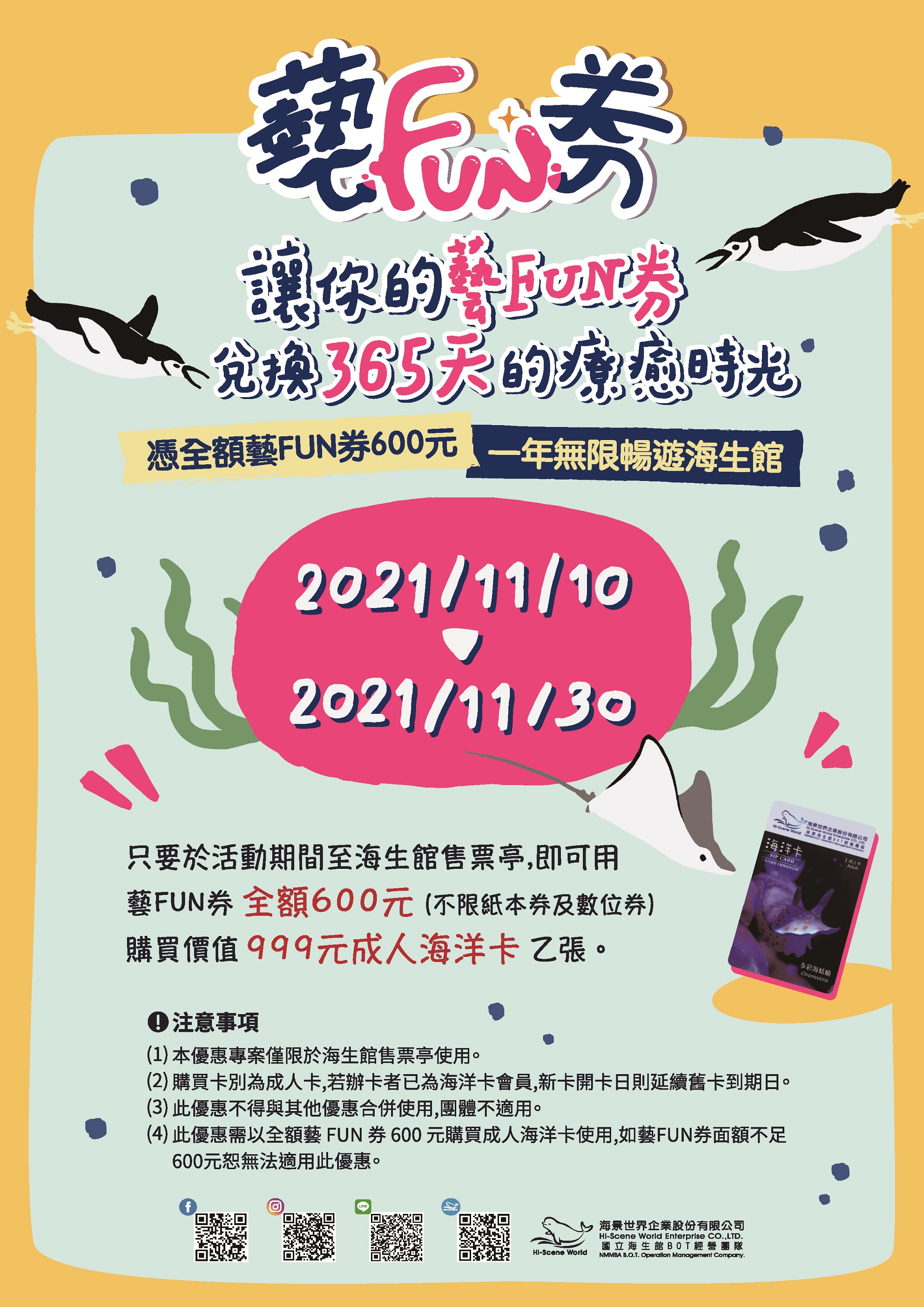 海生館藝FUN券優惠專案詳情:https://aquarium.com.tw/event.asp?ID=293