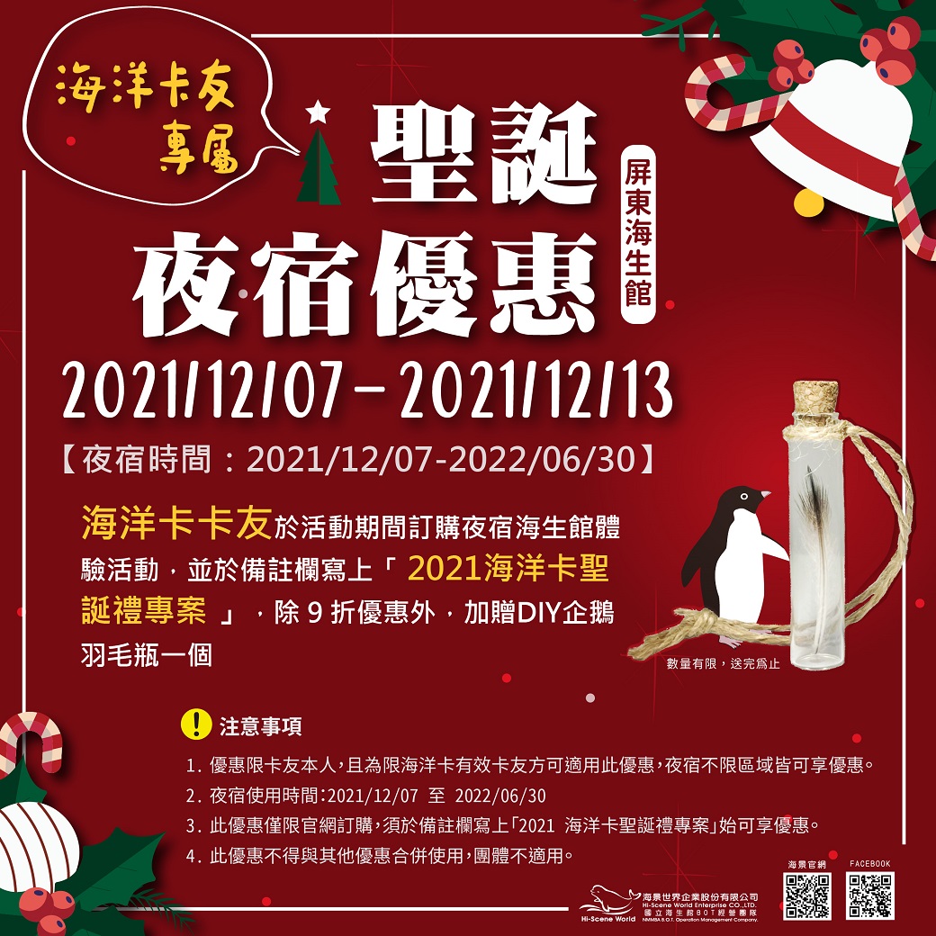 海洋卡卡友專屬聖誕禮夜宿優惠專案詳情:https://aquarium.com.tw/event.asp?ID=295