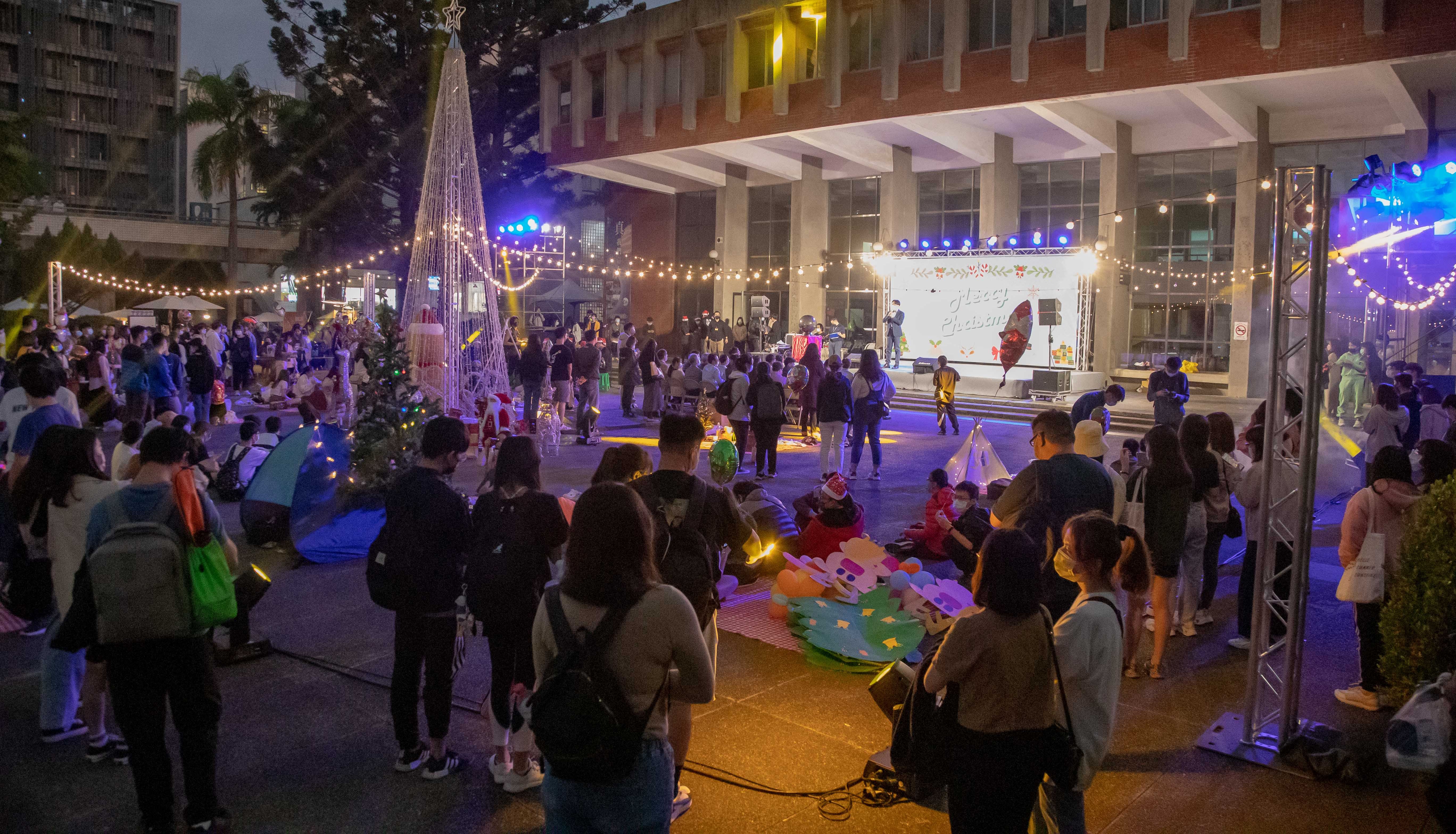 夜幕低垂後,原青社熱情奔放演出及吉他社輕柔歌聲揭開「2021嘉藥聖誕禮讚」點燈序幕,點燈儀式已經是嘉藥聖誕週多年的傳統,今年疫情下意義更顯不同,從遠距教學的「分離」、重返校園的「相聚」、延續到「盼望」全球平安的聖誕點燈,當全體師生一同點下希望祝福聖誕燈時,不只感恩能繼續與珍惜的人相聚相守,也將更堅強面對不同的挑戰,一起為平安喜樂的2022認真努力。