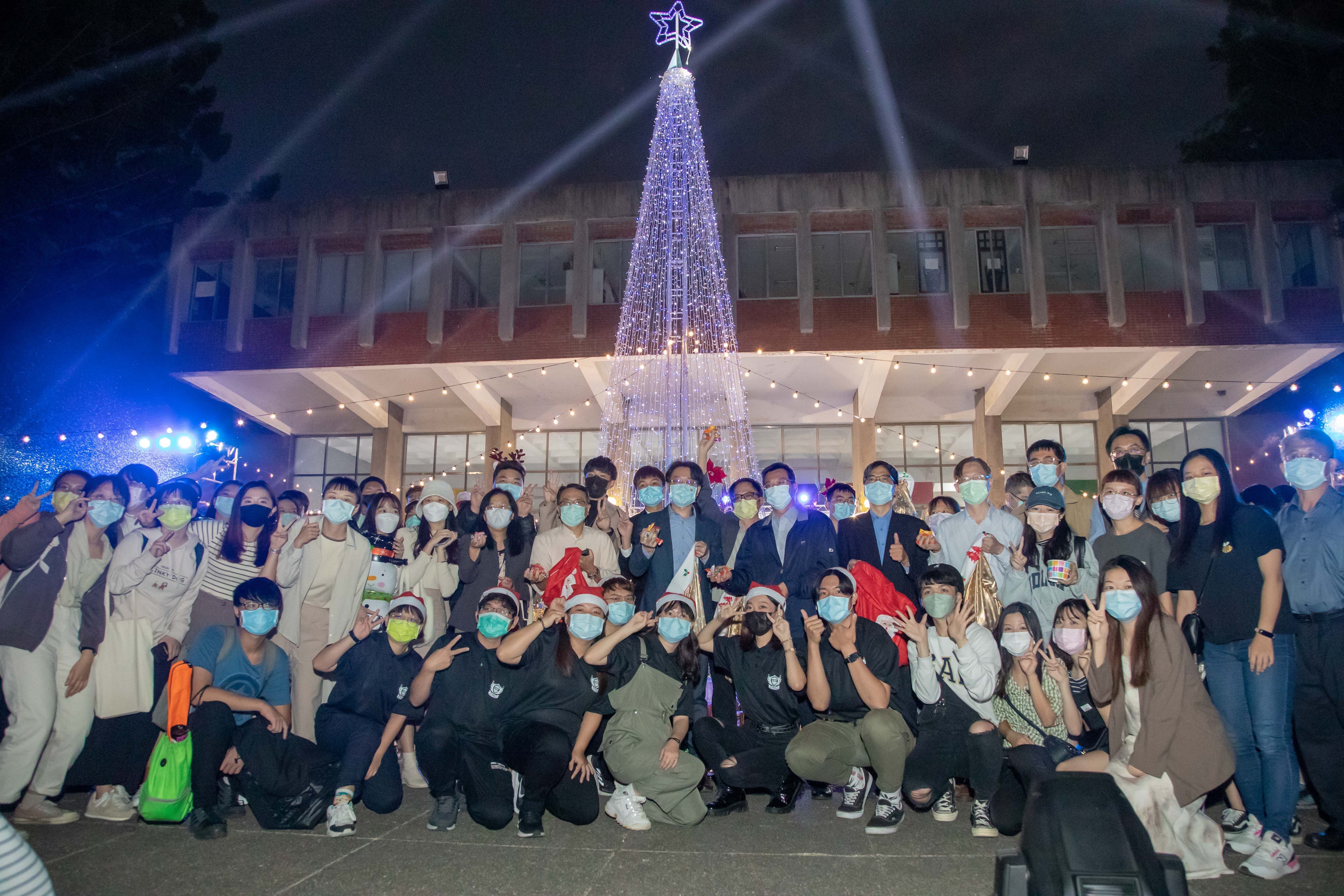 嘉南藥理大學於15日舉辦聖誕節點燈儀式,宣告年度聖誕週活動開跑,希望藉由豐富熱情的校園活動來揮別2021新冠疫情陰霾,也期盼迎來健康平安的2022,逐步恢復正常校園生活,該校師長們與現場同學齊聲高唱「We wish you merry Christmas」,互道聖誕快樂,現場充滿聖誕歡樂氛圍。