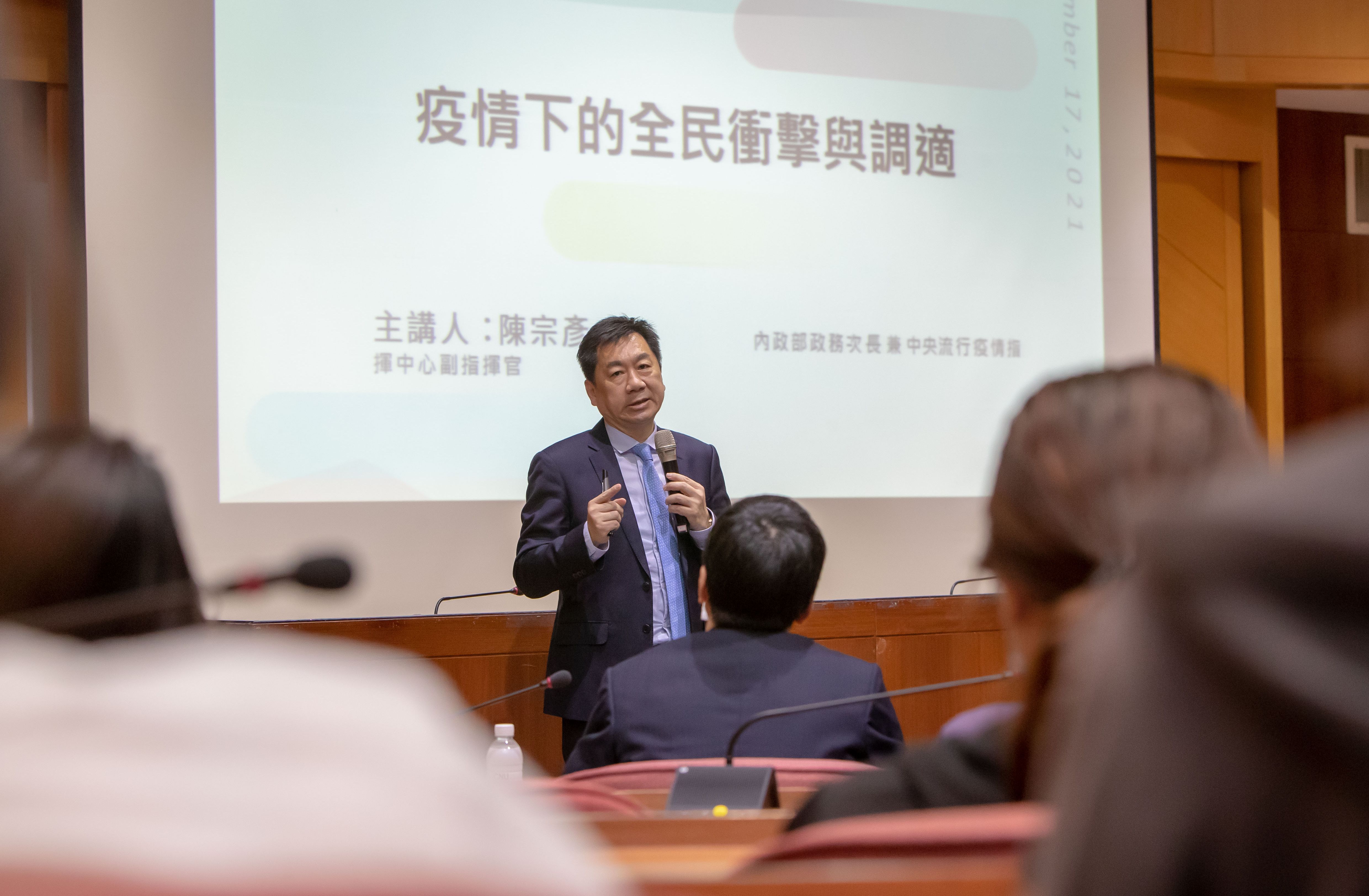 ▲ 陳宗彥政務次長以「新冠肺炎對臺灣全民的衝擊與調適」為題分享防疫的成果與艱辛