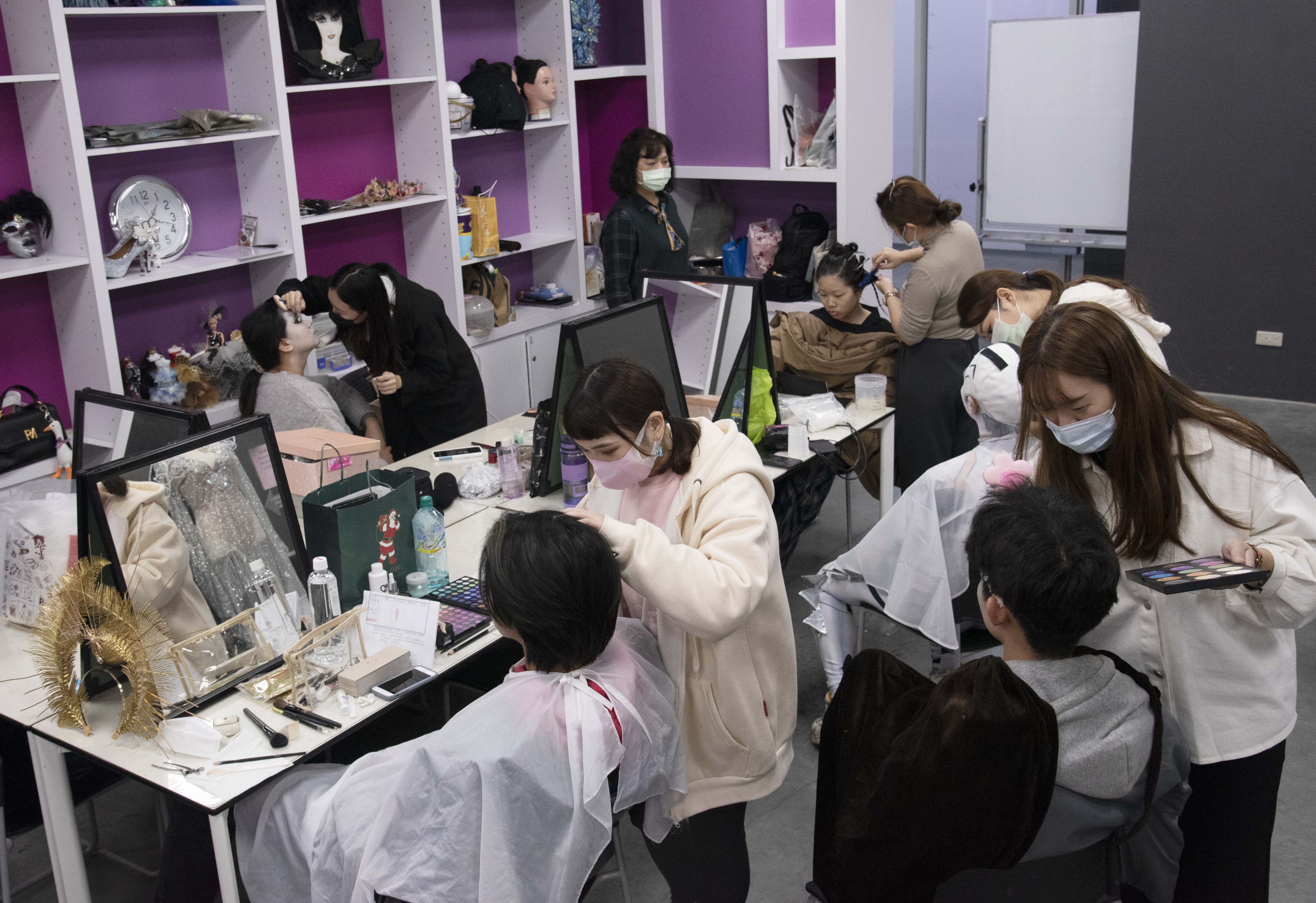 ▲ 嘉藥粧品系同學一早為畢展活動進行準備