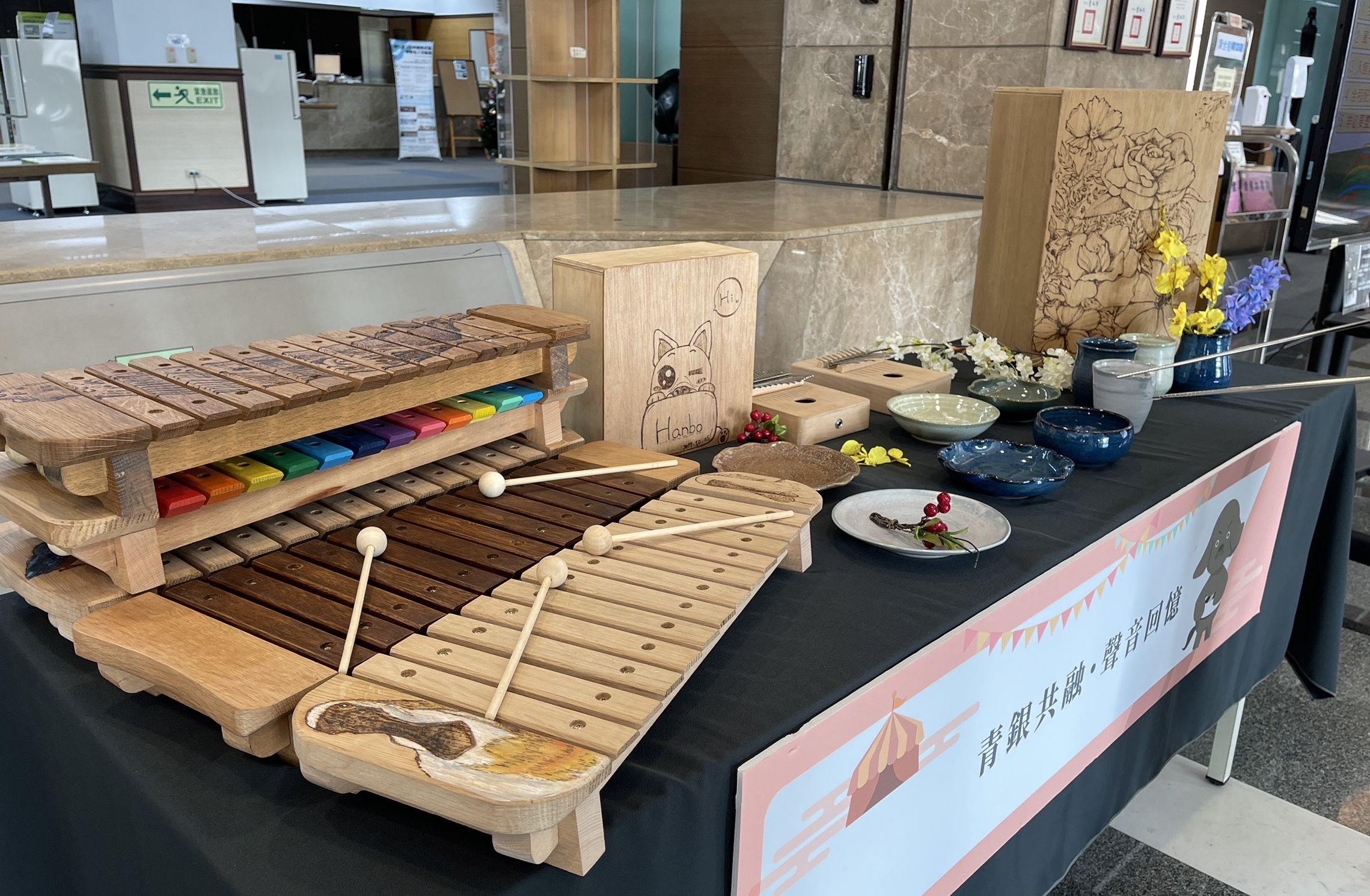 現場展出了符合庶民生活的木箱鼓、能敲擊出各式音階的陶瓷樂器,還有第三年計畫主題的木琴樂器,這些成果都是由學生及社區長輩親手製作,今年的計畫以社區建立具有個人特色的社區樂團,並將邀請專業師資指導,透過社區長輩與學生一同製作樂器及音樂演奏會導入青銀共融議題,學生與社區居民在親切互動中建立社區特色和深度認同,也讓社區長者能透過團隊計畫的規劃活動,變得更健康更有活力,達成健康促進的目的,另類減緩高齡化及少子化的現象。