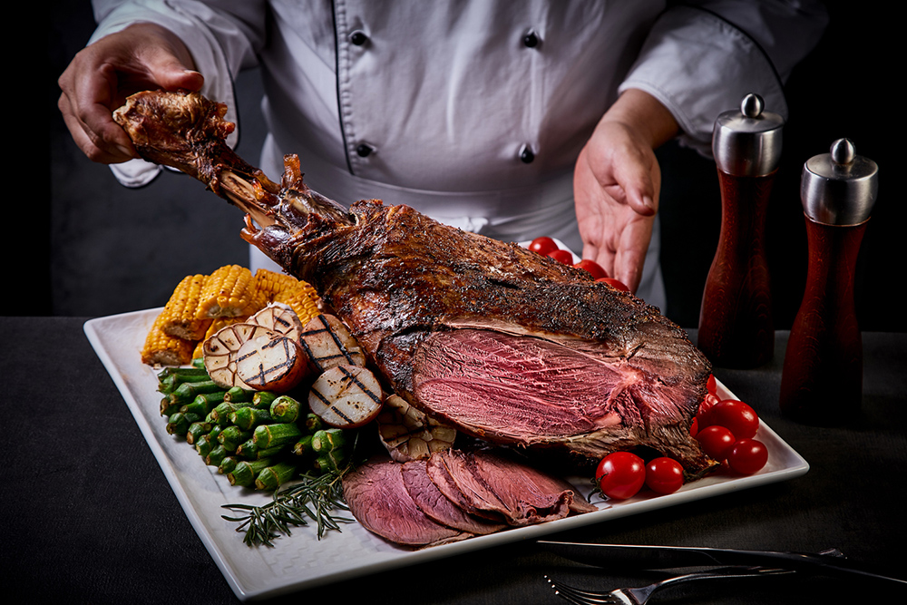 ▲ 台南遠東香格里拉周年慶遠東Cafe自3月21日至24日晚餐現切爐烤牛排霸氣升級為爐烤戰斧牛排與羊腿