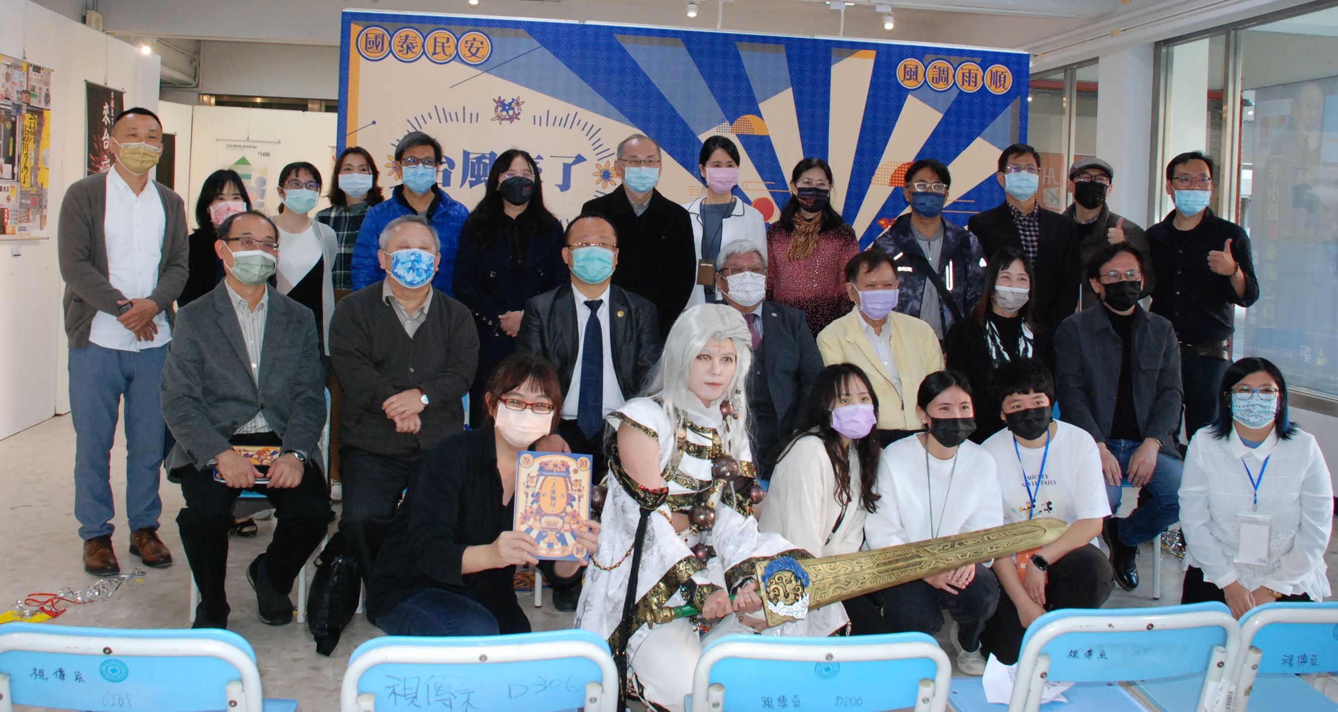 謝宇昕《風來了!朋友!我罩你!》『台風來了』三校海報創作聯展將於111年2月25日至3月4日於台南應用科技大學藝術中心展出,2月25日下午三點舉行開幕儀式,本校黃基正董事長、紀弘明董事、黃宗成校長及台師大何清輝教授、高師大陳立民教授蒞臨開幕典禮。該展將於4月7日移師至台灣師範大學「台師大設計口-東口展覽區」接續展出,期待讓台風的威力繼續吹拂,傳遞台灣的美與好。