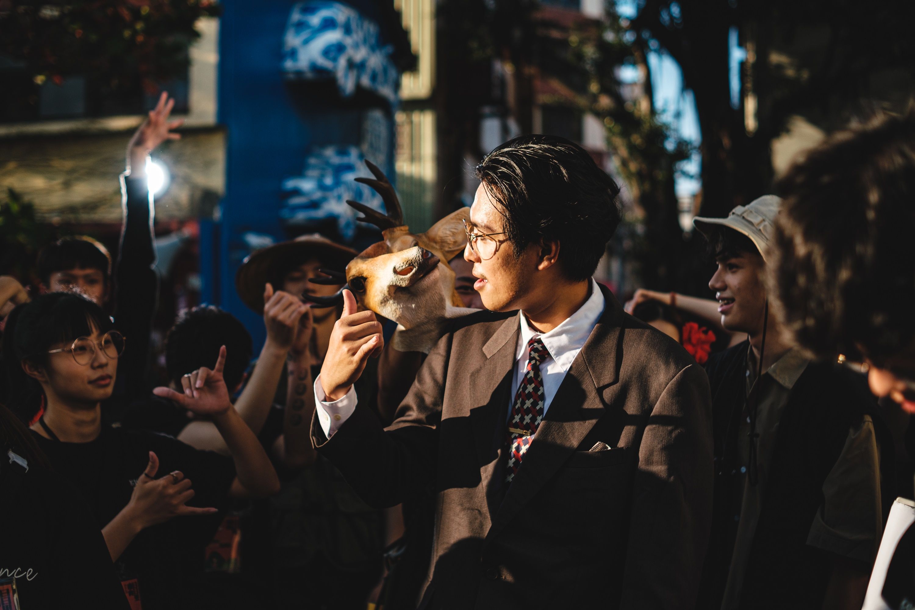 談到拍攝場景的陳設,由於鄭淙禎希望天際線可以有影展主視覺的旗幟,美術組便在美術指導徐東翔老師的討論下聯想到近日深陷戰火的烏克蘭,「一旦國家失去了主權落入獨裁者之手,便無法自在地呼吸與創作,也不會有『南向日日里』精彩的影展,因此便決定在場景佈置出『藍為天、麥為地』的烏克蘭國旗色,讓影展的旗幟可以在藍天下飄揚,祈禱戰爭盡快結束、世界得以和平。」