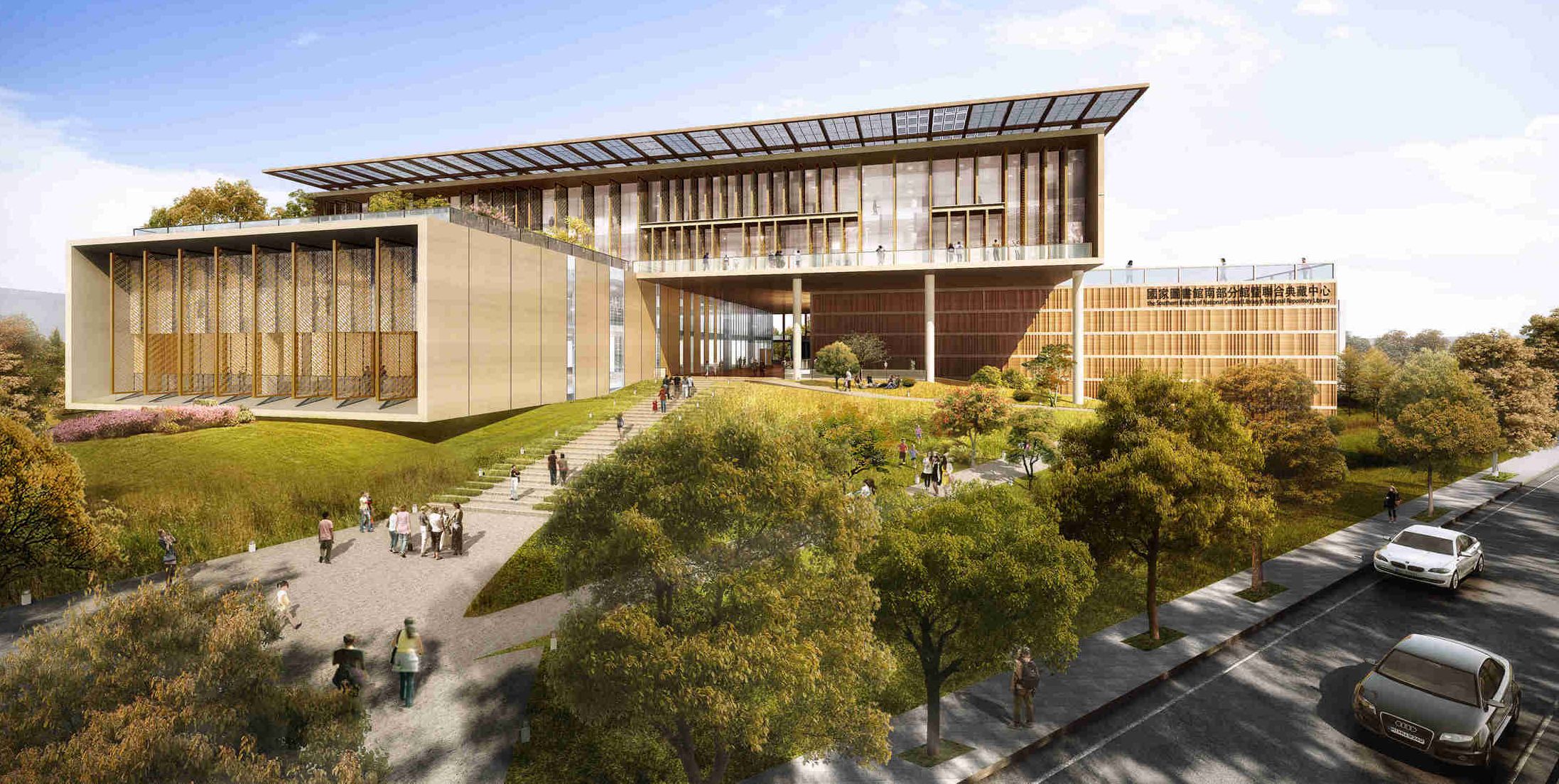 ,總樓地板面積為5萬1千多平方公尺,地下1層、地上5層的建築物,將圖書館、博物館、全國聯合典藏中心等主要空間,與南北向的公共軸線相連接,形塑一個綠意盎然的閱讀公園。