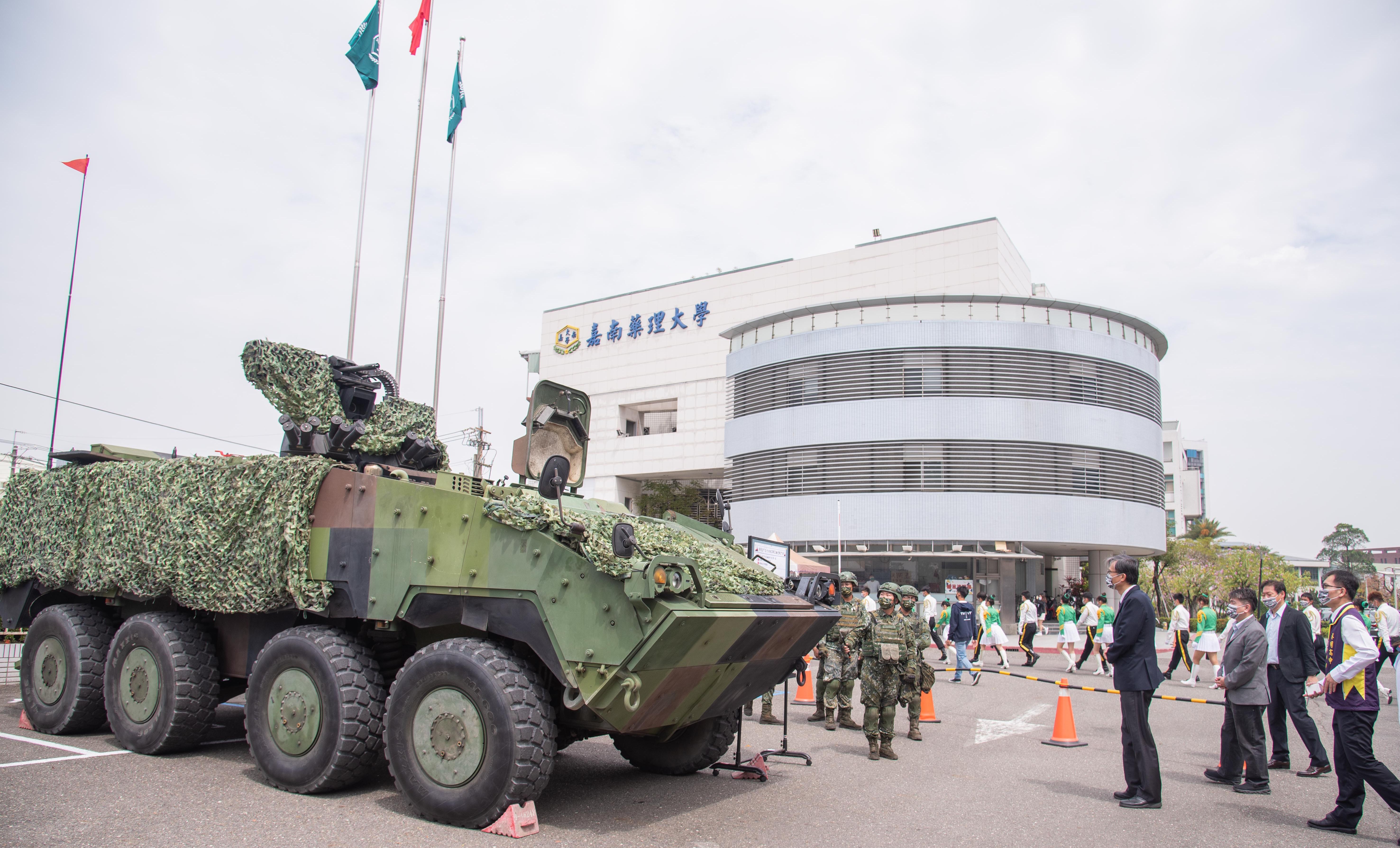 嘉南藥理大學為慶祝56週年校慶暨結合青年節慶典,特於29、30日辦理「保嘉衛民軍事嘉年華」全民國防教育多元活動,該活動獲得國軍第八軍團指揮部全力支持,不只首次提供雲豹裝甲車及拖式飛彈車等多種戰鬥裝甲車輛展示,讓學生有機會親身「零距離」體驗,更設置了有趣的闖關遊戲,以輕鬆務實的方式提升師生國防共識及知能,進而內化「保家衛國、人人有責」的全民國防體認。