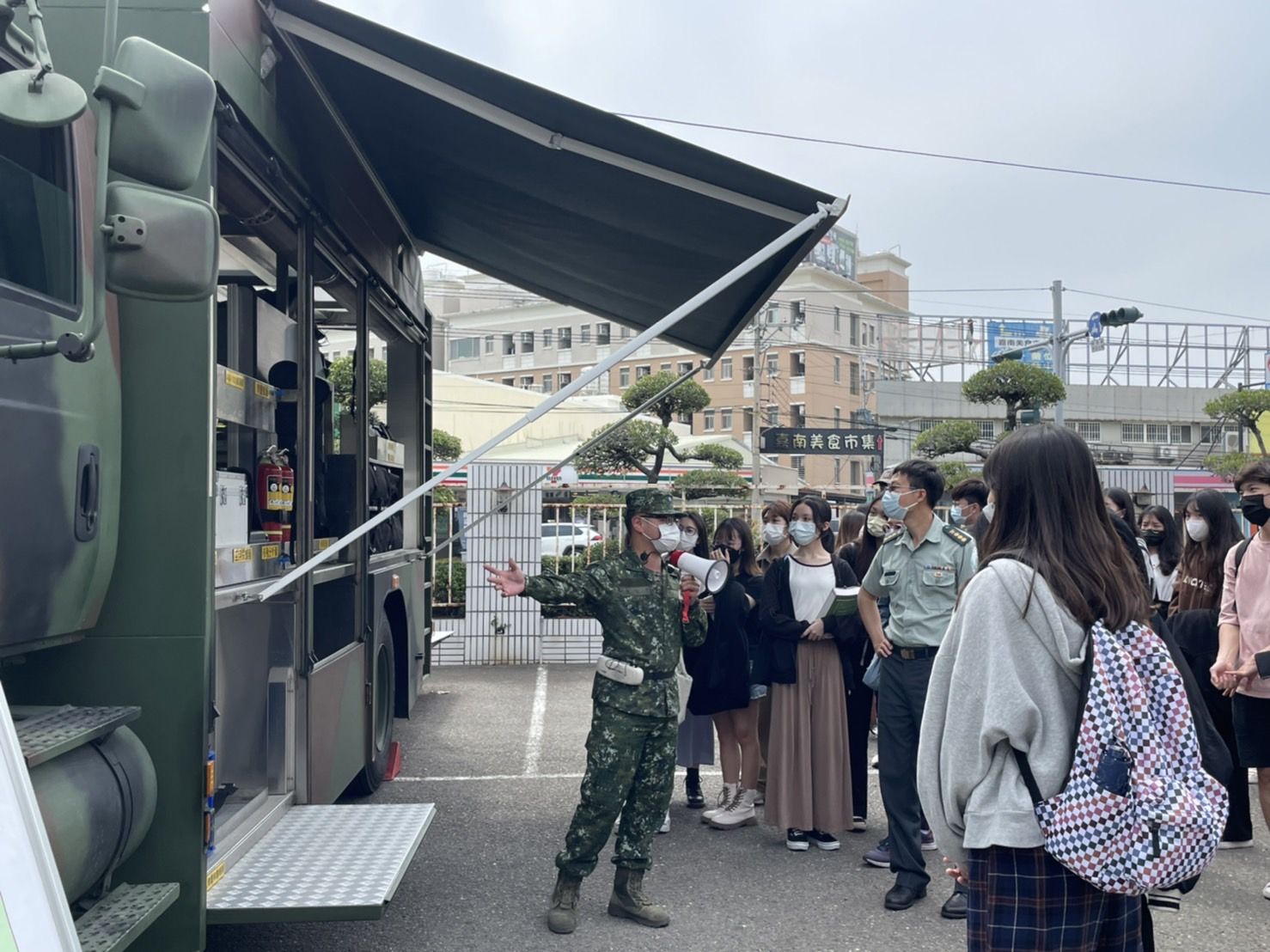 活動也邀請陸軍第八軍團裝甲第五六四旅、三九化學兵群、五四工兵群、臺南憲兵隊及國防部南部地區人才招募中心等5個軍事單位共同參與,設置了包括「變形金剛」、「猜猜我是誰」、「聽聲辨位」、「救援傷兵」及「百步穿楊」等關卡,透過實際操作及體驗,使同學瞭解各部隊任務特性;其中,由陸軍第八軍團指揮部鼎力支持的雲豹裝甲車及拖式飛彈車等戰鬥裝甲車輛,這些平時只有在作戰演練等重大演習方能見到的武器裝備,是本活動最大亮點。