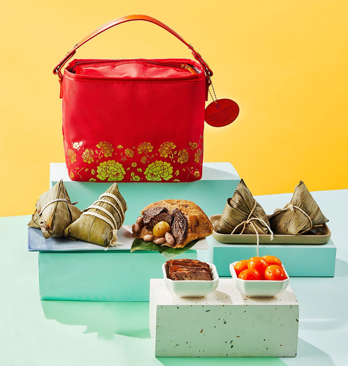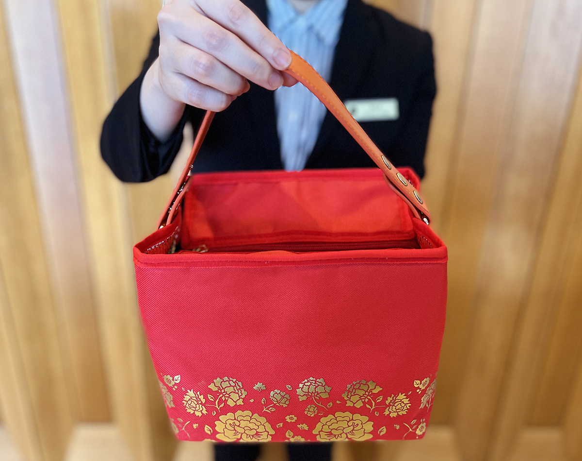 端午粽子除了是與摯友親朋共用的佳節美點外,飯店每年推陳出新的禮袋設計,更是送禮選擇的關鍵,今年延續環保概念設計精美實用的保冷、保溫提袋,以「經典紅」為主色,搭配富貴燙金牡丹花,造型輕巧、亮眼吸睛,盡顯其傳統與創意集一身的特點。