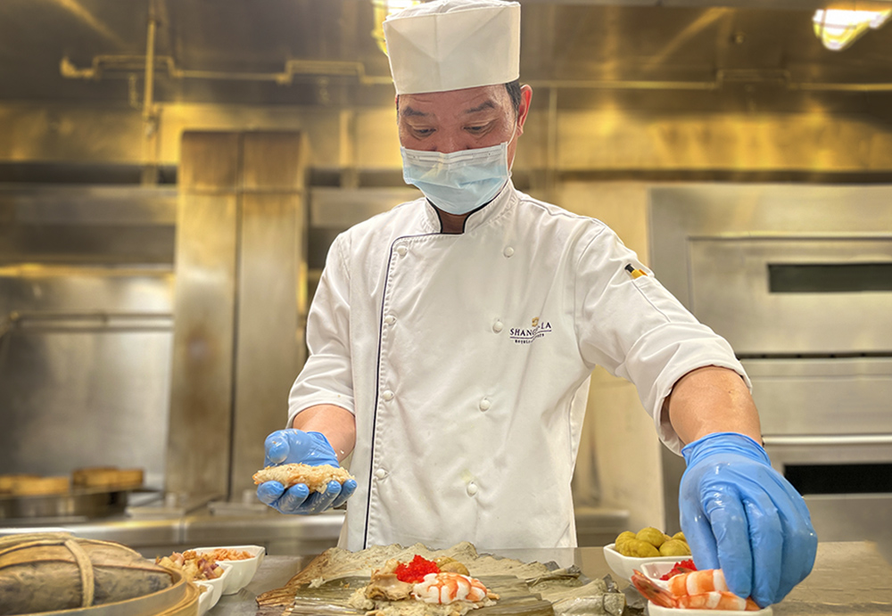 每逢端午,華人常以粽子傳遞真情真意的感謝與祝福,奢華海味的「鮑魚虎蝦海鮮粽」(約300公克/顆),主廚團隊以清香荷葉結合白糯米、圓糯米、小麥米及虎蝦、14頭大連鮑魚、海參等頂尖海味,將食材精華與在地後壁三款米香完美融合,分量扎實,每一口都是香濃的海鮮味;喜愛烤鴨的消費者則不能錯過江浙風味「筍絲雪菜鴨絲粽」(約200公克/顆),宜蘭櫻桃鴨經煙燻處理,加入香菇、筍絲及上海老雪菜等豐富配料而成的迷人風味,口感豐富香氣濃郁,令人食指大動;而中西融會的創新「紅酒和牛臉頰粽」(約300公克/顆)酒味飄香,師傅精選一頭牛只有兩片的珍貴臉頰肉,用紅酒醬汁悉心煨煮,加入紅蒜頭及蝦米炒香過的白糯米包製而成,柔嫩多汁的肉質與香Q糯米交織一味,令人一吃就難以忘懷;還有台式新意的「麻油松阪豬粽」(約200公克/顆)嚴選嫩中帶脆,油脂豐富的豬頸肉,加入吸附麻油獨特香氣的白糯米以及花菇、鹹蛋黃、紅蔥頭等豐富內餡增加味覺層次感,滋補又暖胃。