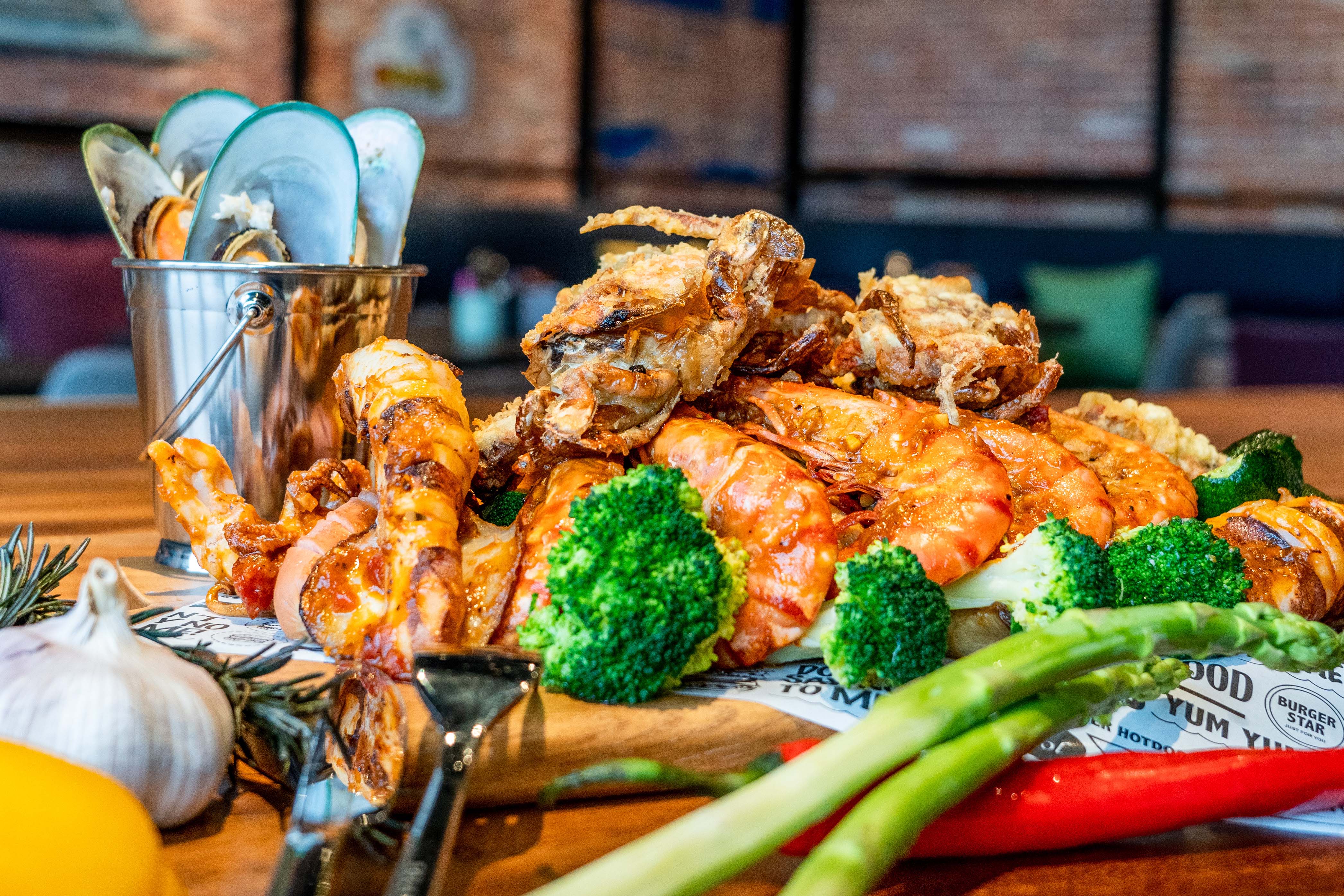 海鮮控不可錯過的必推之一!適合三到四人享用的蒜炒海鮮拼盤集結以蒜頭及白酒煎炒的魷魚與草蝦、酥炸脆口的軟殼蟹及肉質飽滿Q彈的淡菜這四大消費者喜愛的新鮮海味。配上口味鮮明強烈且辛辣的紐澳良風味醬,主廚獨家的完美比例混合大蒜、鹽、洋蔥、匈牙利紅椒、白胡椒、紅胡椒及其他辛香料,創造多層次香氣,令人欲罷不能的吮指美味,是家庭相聚或三五好友聚餐的最佳分享餐。