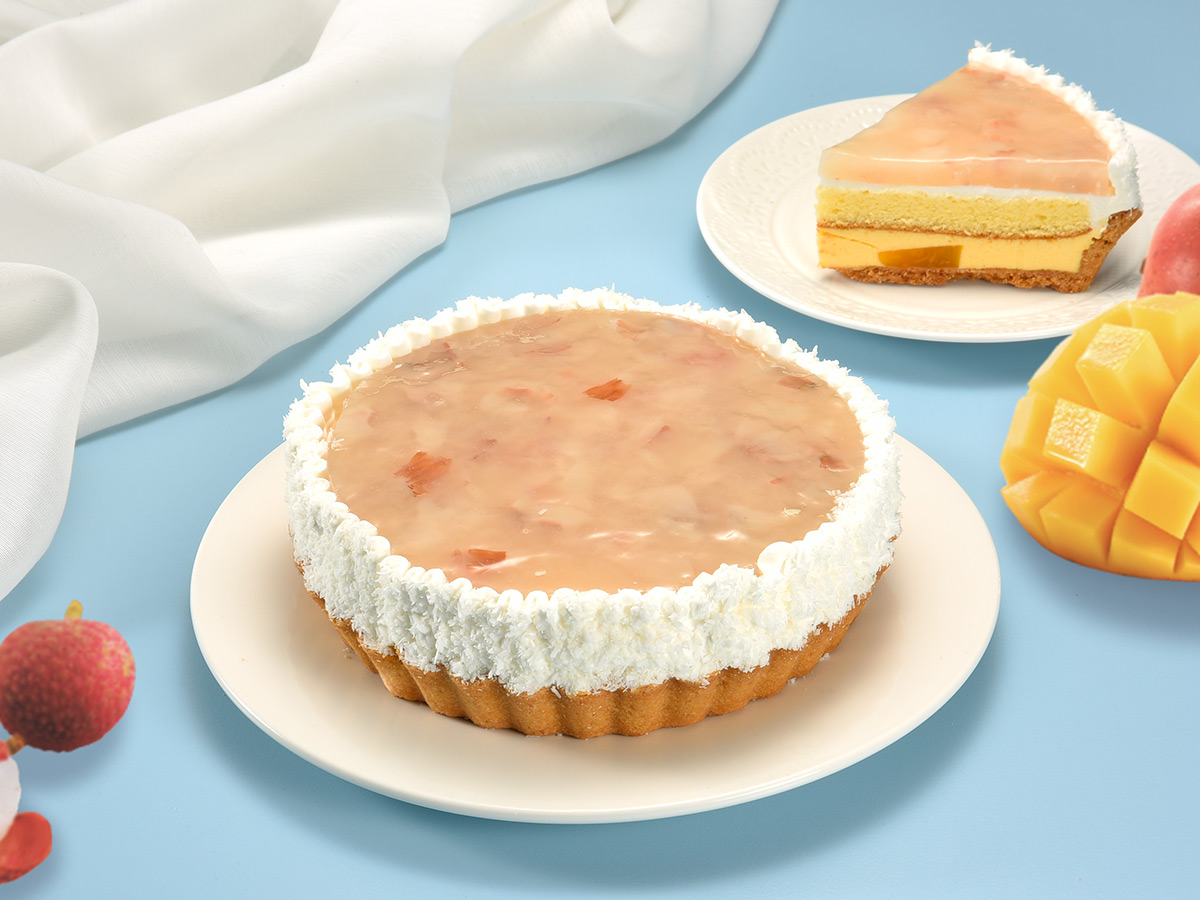 當荔枝與芒果相遇,Q彈的荔枝果肉搭配柔滑的慕斯,豐厚馥郁的芒果香氣融入其中,這款清爽不膩口的「芒果荔枝派」結合酥脆派皮,口感更具層次。