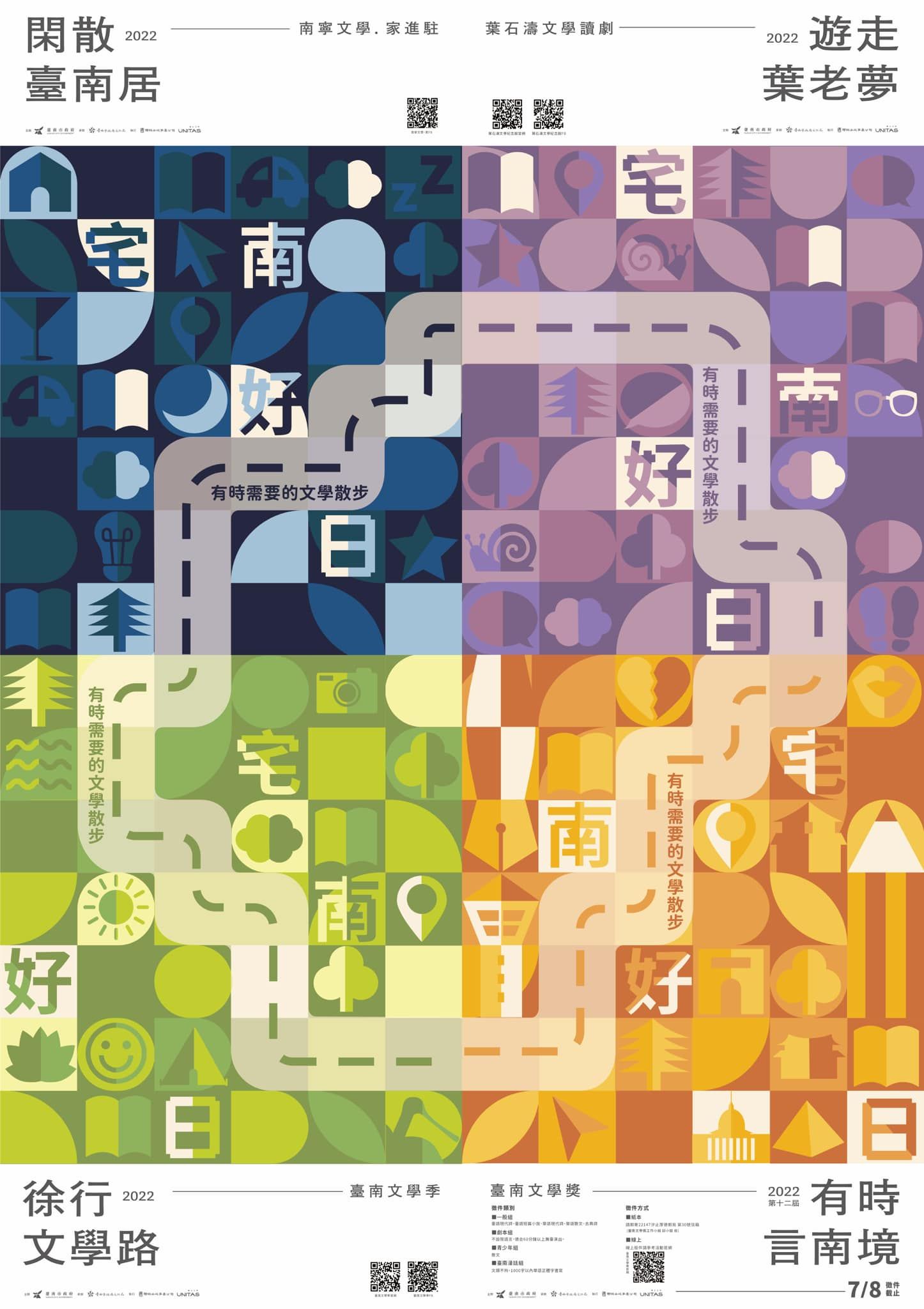 第一手掌握2022年臺南文學「徐行文學路」、「閑散臺南居」、「遊走葉老夢」及「有時言南境」4大推廣系列活動精彩內容,歡迎隨時鎖定臺南文學季FB粉絲專頁(https://www.facebook.com/tainanliteraturefestival)或IG粉絲專頁(https://www.instagram.com/tainanliterature)。