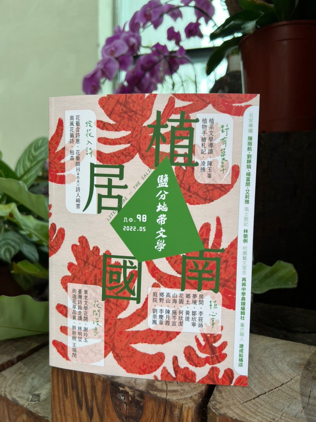 本期別出心裁的主題「植居南國」,邀請不同領域的生態學者、自然作家、詩人、花藝師、芳療師等參與,如陳玉峯、凌拂、林明堃、王瑞閔、Hana、崎雲、柏森,透過作家的自然之眼與領讀腳步,書寫日常所接觸的各種植物,共同探索植物與文學的關係。在名家專欄部分,由陳雨航、劉靜娟、楊富閔與艾莉雅等四位重磅作家,撰寫在地題材的旅行文學、自然書寫或風土觀察,帶領讀者感受人與自然以及風土創作的緊密連結。