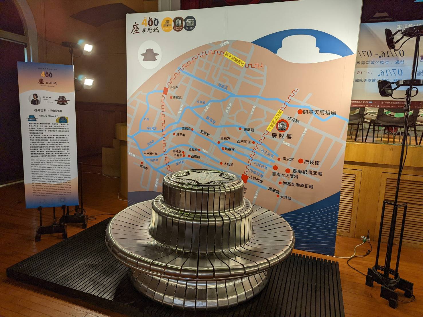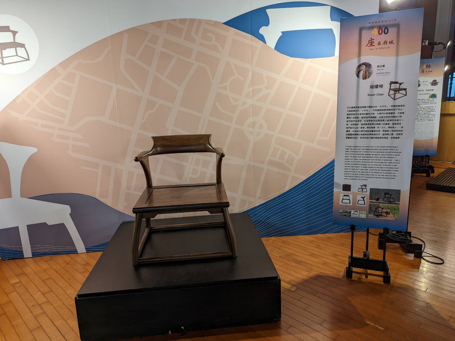 每一位創作者以獨到的設計詮釋,融貫歷史文化故事與使用機能;匯聚臺南吳園藝文中心表演廳,城市涵構縮影──形成21世紀府城新景觀。包括模型作品15件,1:1實體家具10件。包括:推薦設計競賽組的李佩怡「四締」、利玉文「開東•合西」、張穎茹「對話•臺南」、鄒怡員「巷弄古井•府城浪漫」、蔡志軍「城樓椅」、盧祥華、王景民「臺灣•双城記」 等6件。邀請創作觀摩組的王俠軍「府城在座」、石昭永「燕尾流」、郭書勝「轎椅」、劉國滄「打開南門城」等4件精彩作品。尋求 UNSDGs 聯合國永續發展目標的重要實踐行動中,開發我們城市新生活形態的創意、創新家具。同時,展出表徵明、清、日治及民國四個歷史時期的時空座標座椅,包括:明代「麒麟椅」、清代「鑲雲石葡萄花酸枝座椅」、日治時期「車軹椅凳」、民國時期「中華民國總統府綠廳會客座椅」。