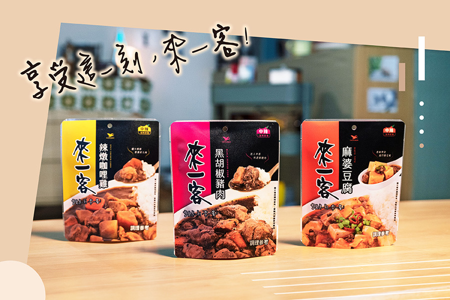 來一客料理包新品以「黑胡椒豬肉」、「辣燉咖哩雞」、「麻婆豆腐」登場,每一口味都細膩地注入料理魂的開發技藝,費心地料理日常的每一客。